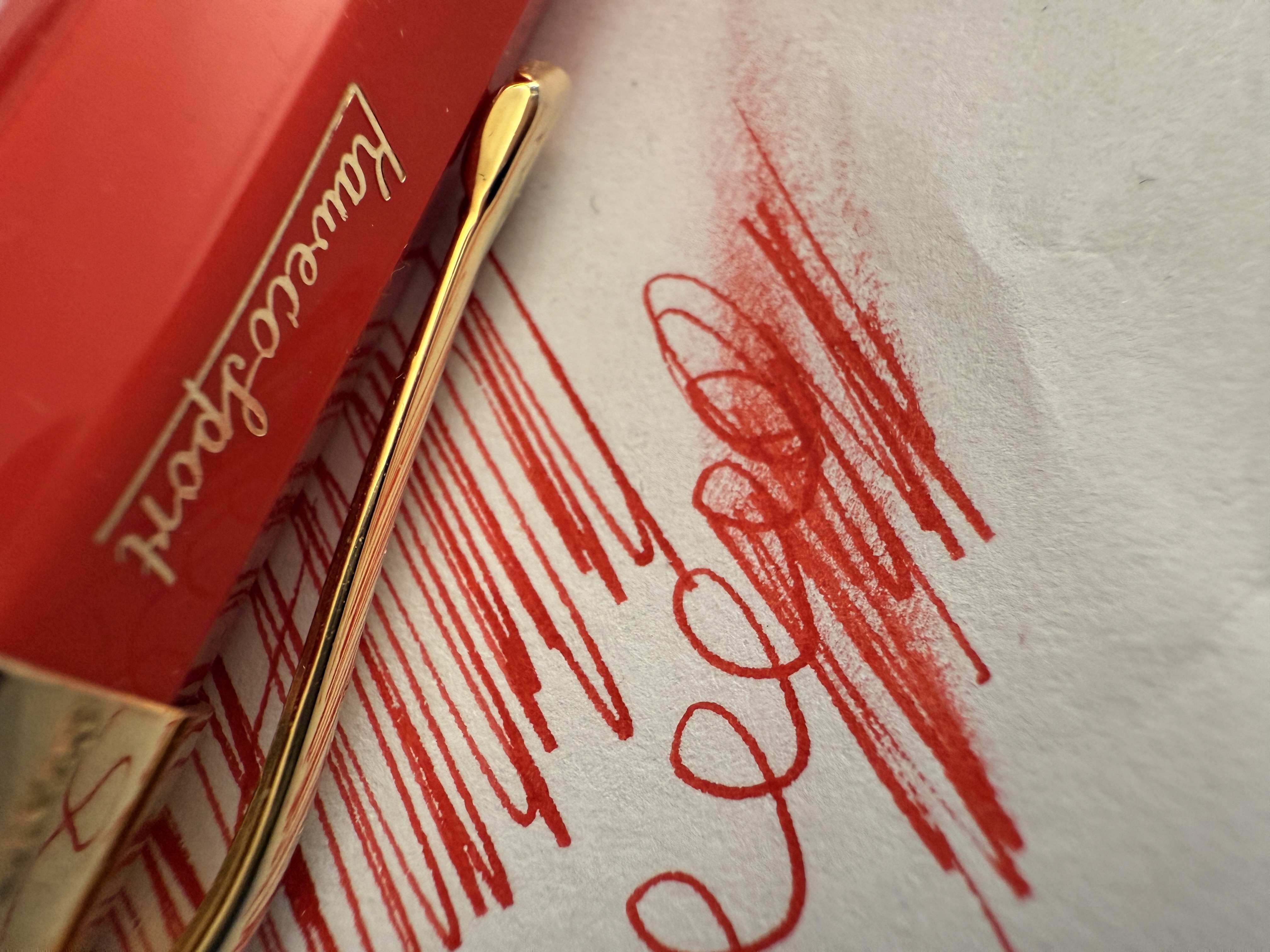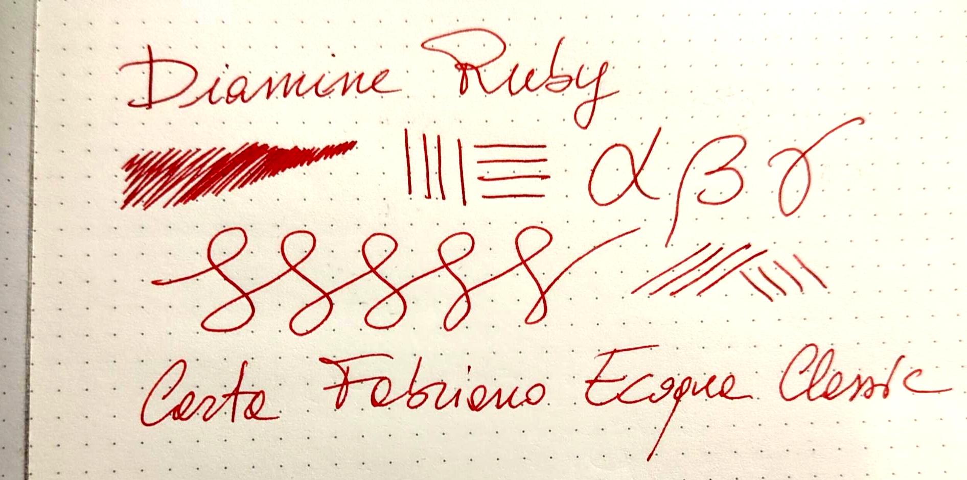 Tra i (pochi) rossi che ho, questo è il Diamine Ruby: che dovrebbe avvicinarsi al rosso corsa.