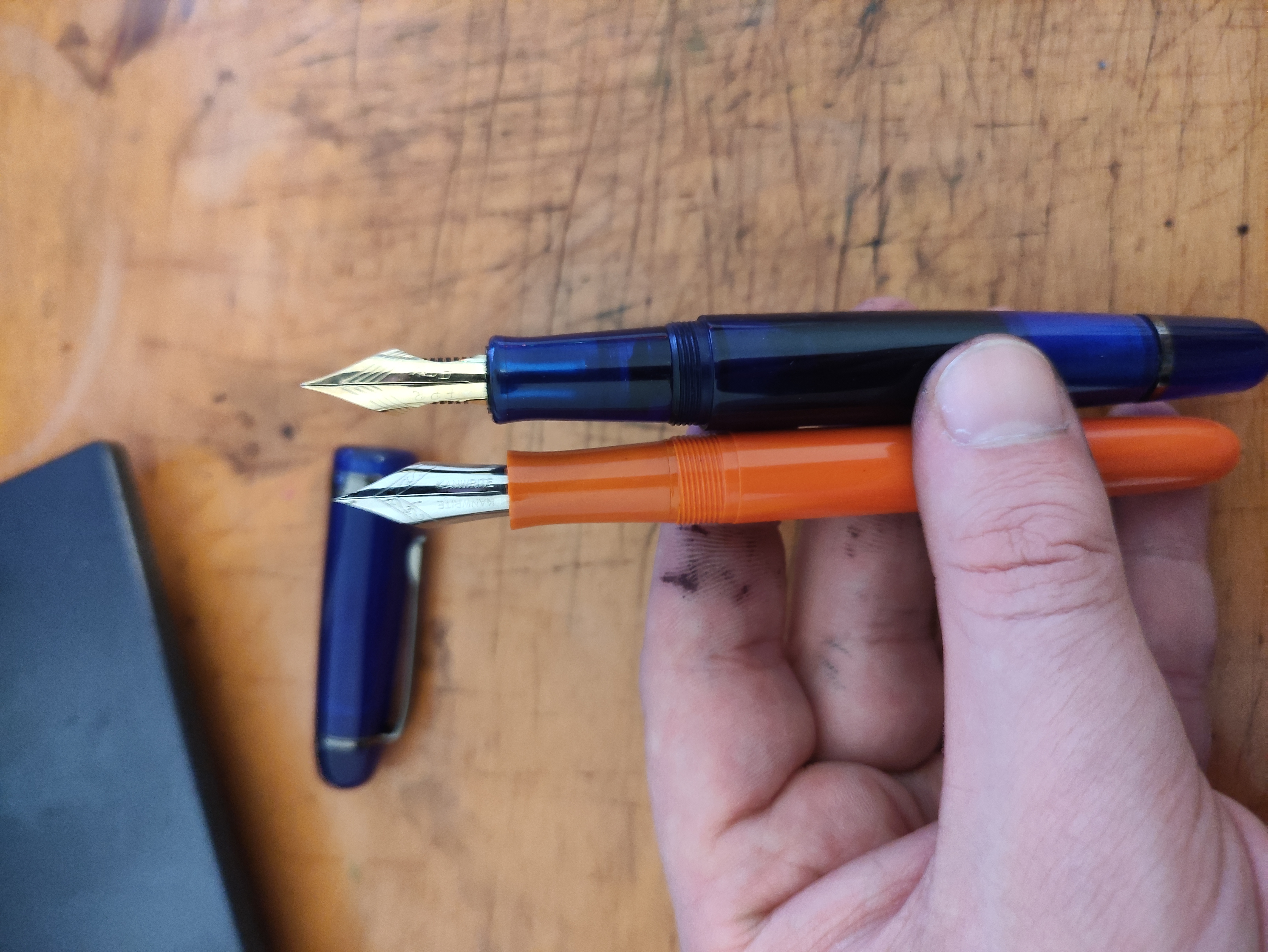 Ho anche una ahab, e noto che il pennino regolare "flex" pare sia migliorato. Mi ricordo che il pennino noodler che era descritto come "flex" in reltà era estremamente rigido invece il kanwrite per qualche motivo mi pare molto meno rigido. Potrebbero aver cambiato materiale? Non ne ho idea.