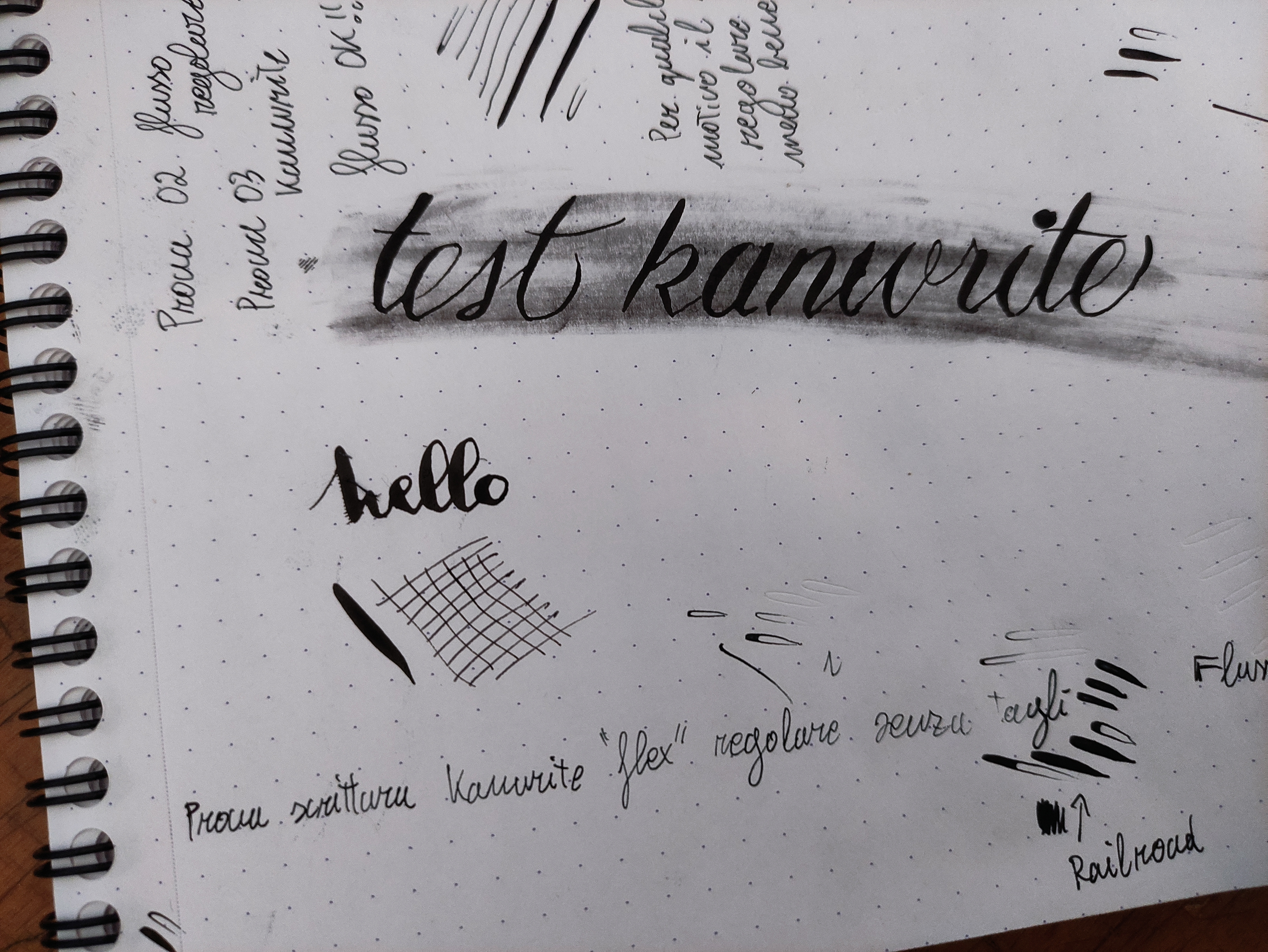 Qua ho fatto test scrittura. Inizialmente il flusso era secco nonostante alimentatore in ebanite. Dopo un tot è partito il flusso e ho fatto un casino. Questo pennino regolare per qualche motivo non funziona alla grande all'inizio. Ci vuole un tot di tempo prima di farlo partire. Alimentatore in ebanite in dotazione funziona decentemente ma non mi pare regoli il flusso in un modo ottimale, difatti ho beccato binari del treno parecchie volte. Però puo darsi che sia presto per dirlo, alle volte ebanite necessita di tempo prima di bagnarsi bene.