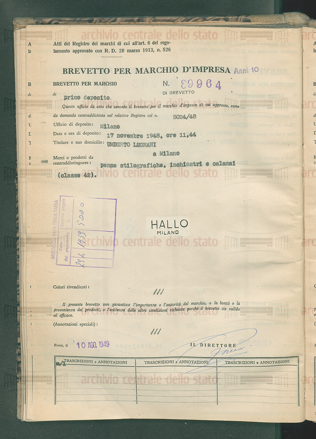 Il marchio Hallo è stato infatti registrato da Umberto Legnani nel 1948.