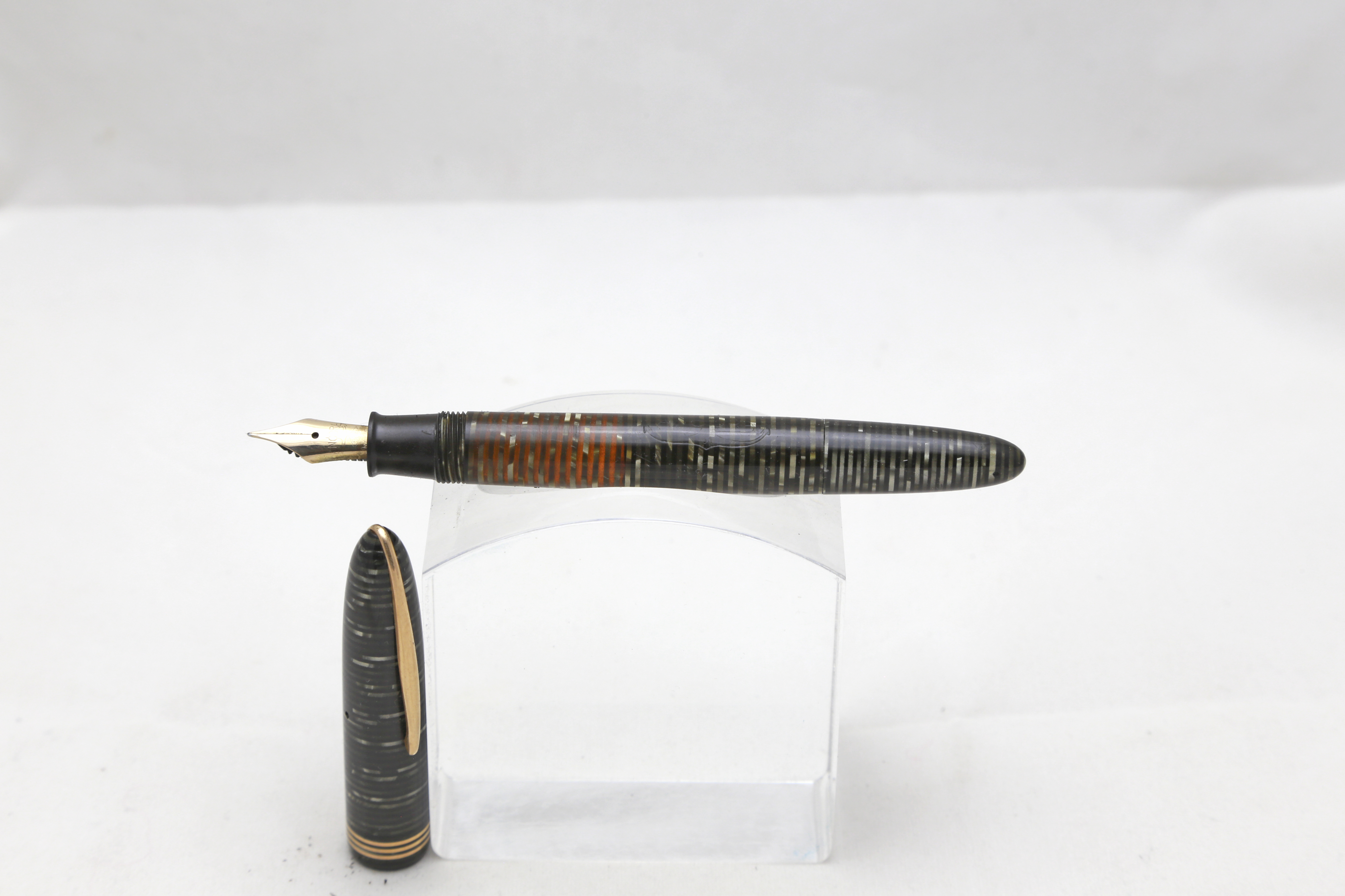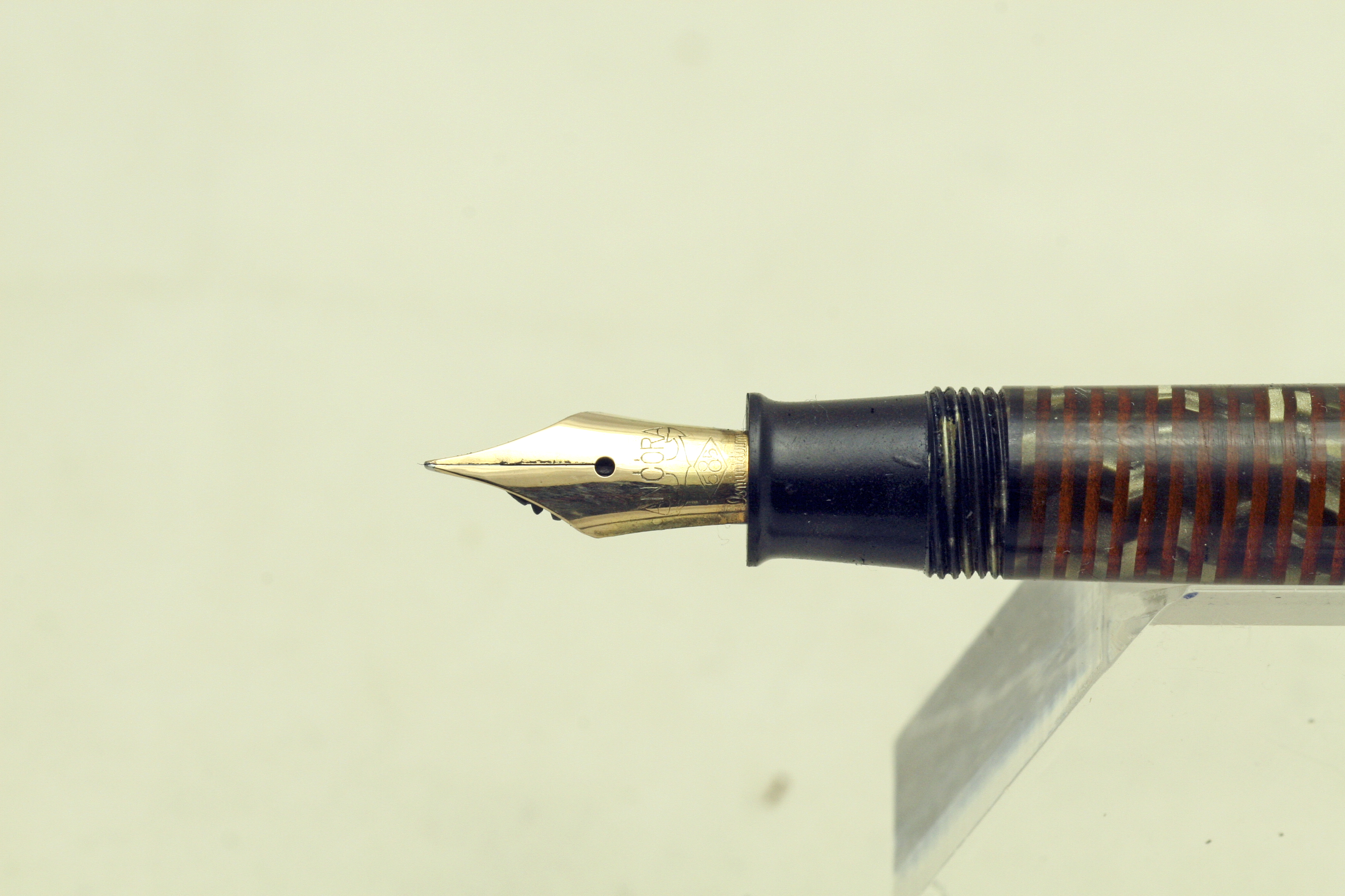 Pubblico qualche foto di questa penna, piuttosto piccola, che io trovo spettacolare nella sua celluloide anellata, recuperata grazie ad un restauro fantastico.