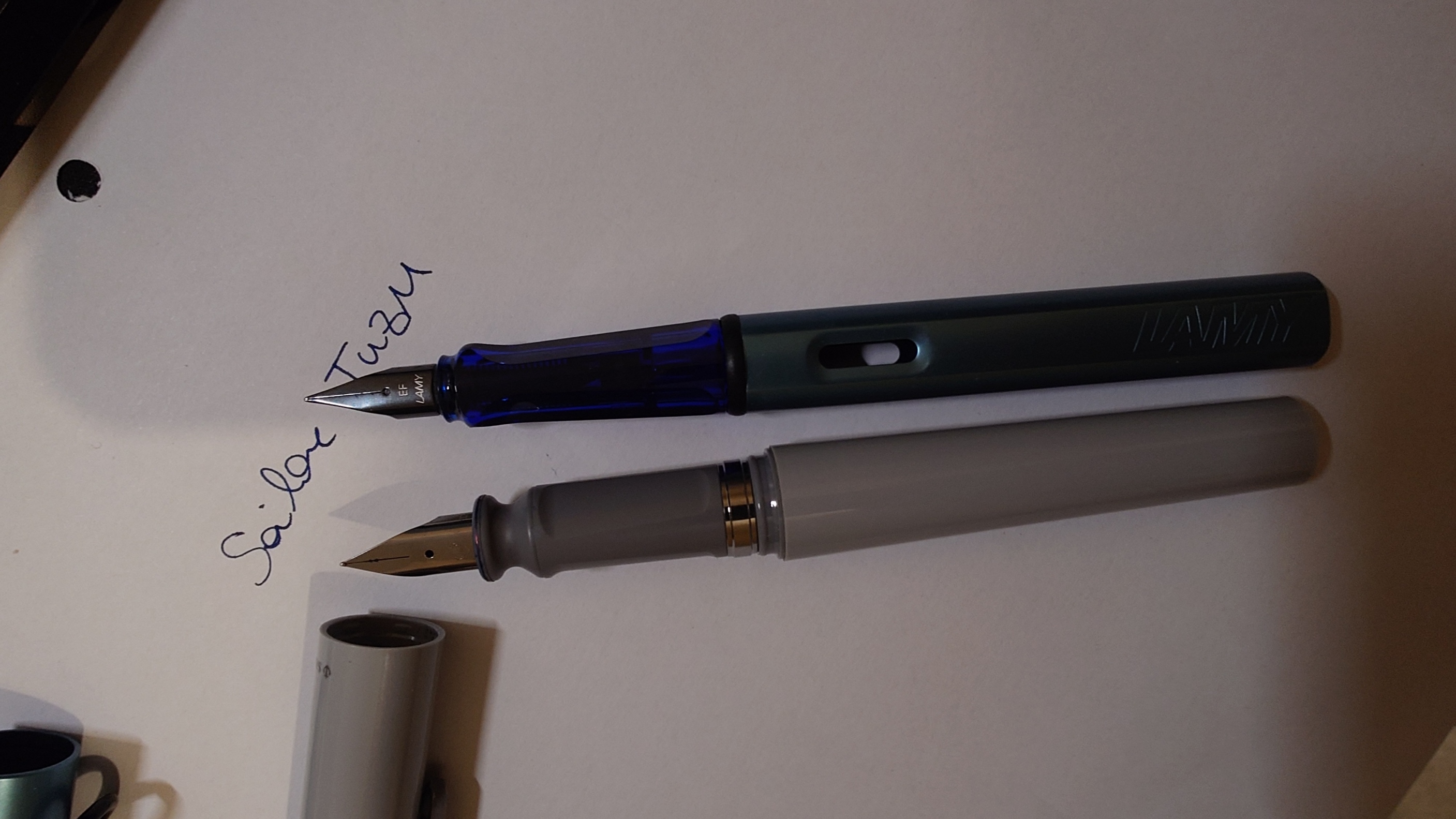 La cosa particolare del tuzu è la possibilità di aggiustare la direzione del pennino , e io lo comprai proprio per provare questa funzionalità e per il converter che ho messo su un'altra penna. Possiedo questa grigia in fine ( che scrive come un extra fine ) e un broad in blu che voglio tenere.