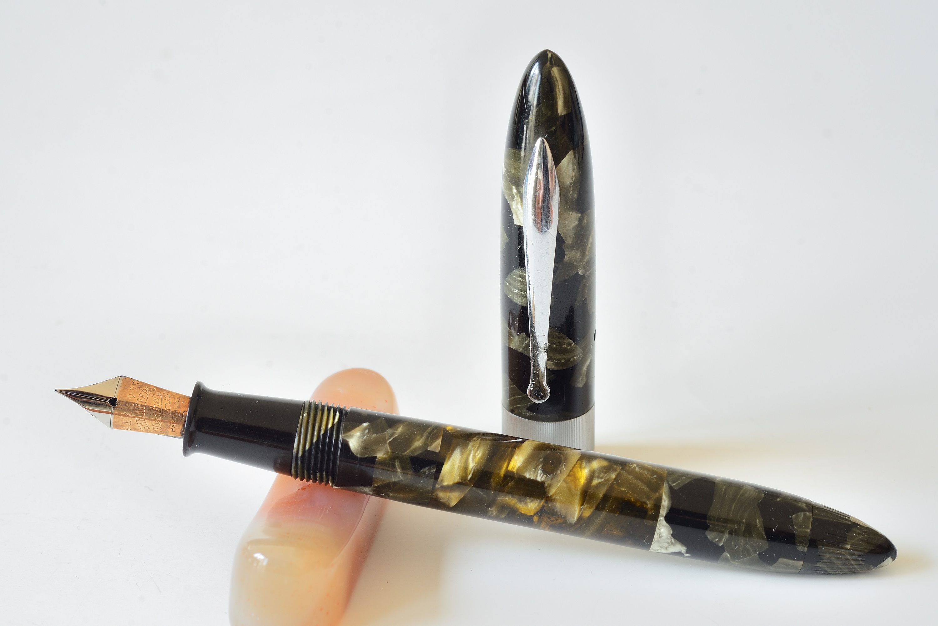 Per la sheaffer com'è strano il mondo. Ho appena preso da un americano l'edizione speciale della Balance II di fine anni novanta (con caricamento a levetta). Non è in celluloide ma viene con un pennino italico broad.
