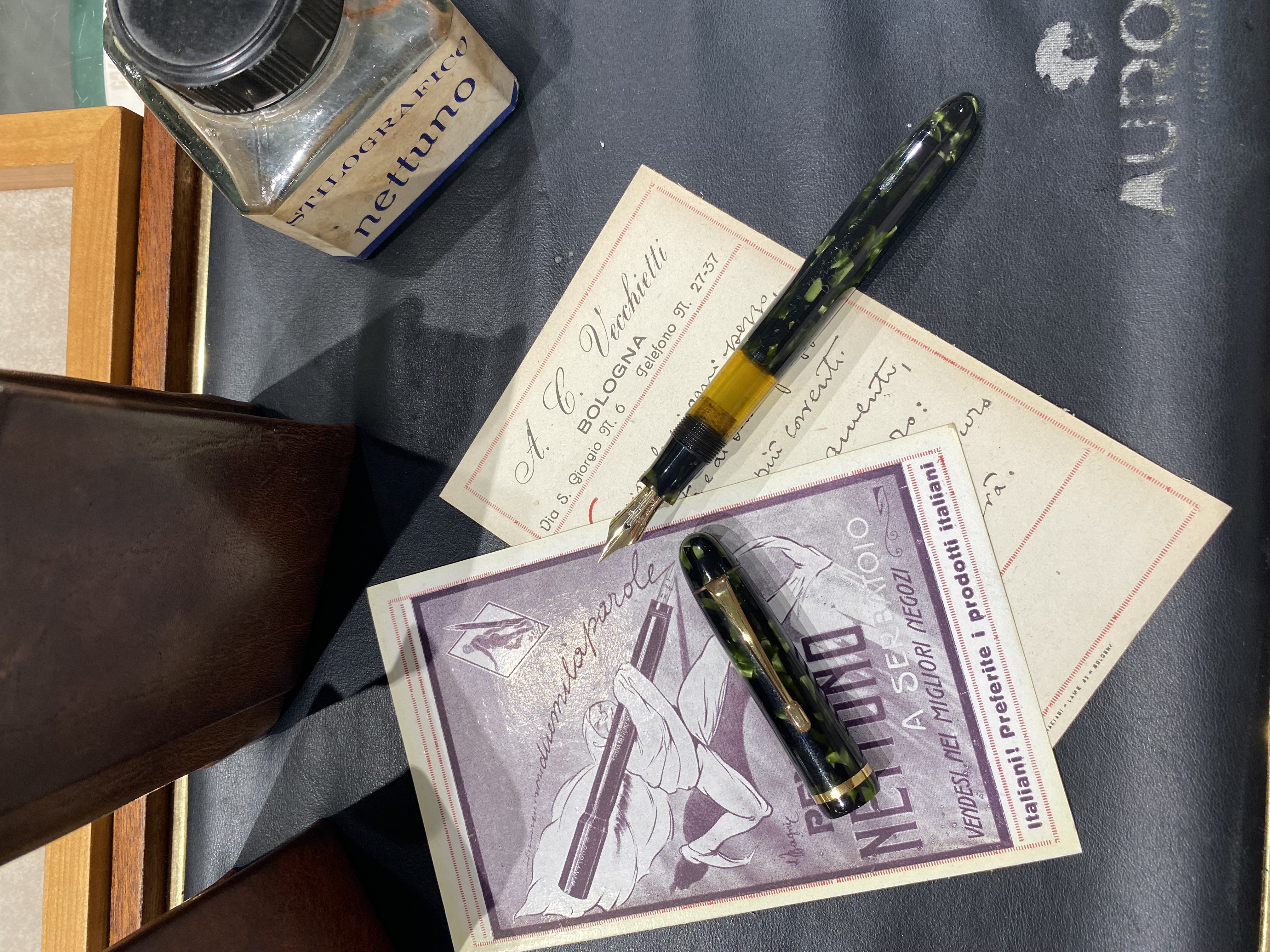 Ecco il secondo esemplare di Nettuno Docet - primi anni 40 - esemplare in celluloide verde.
