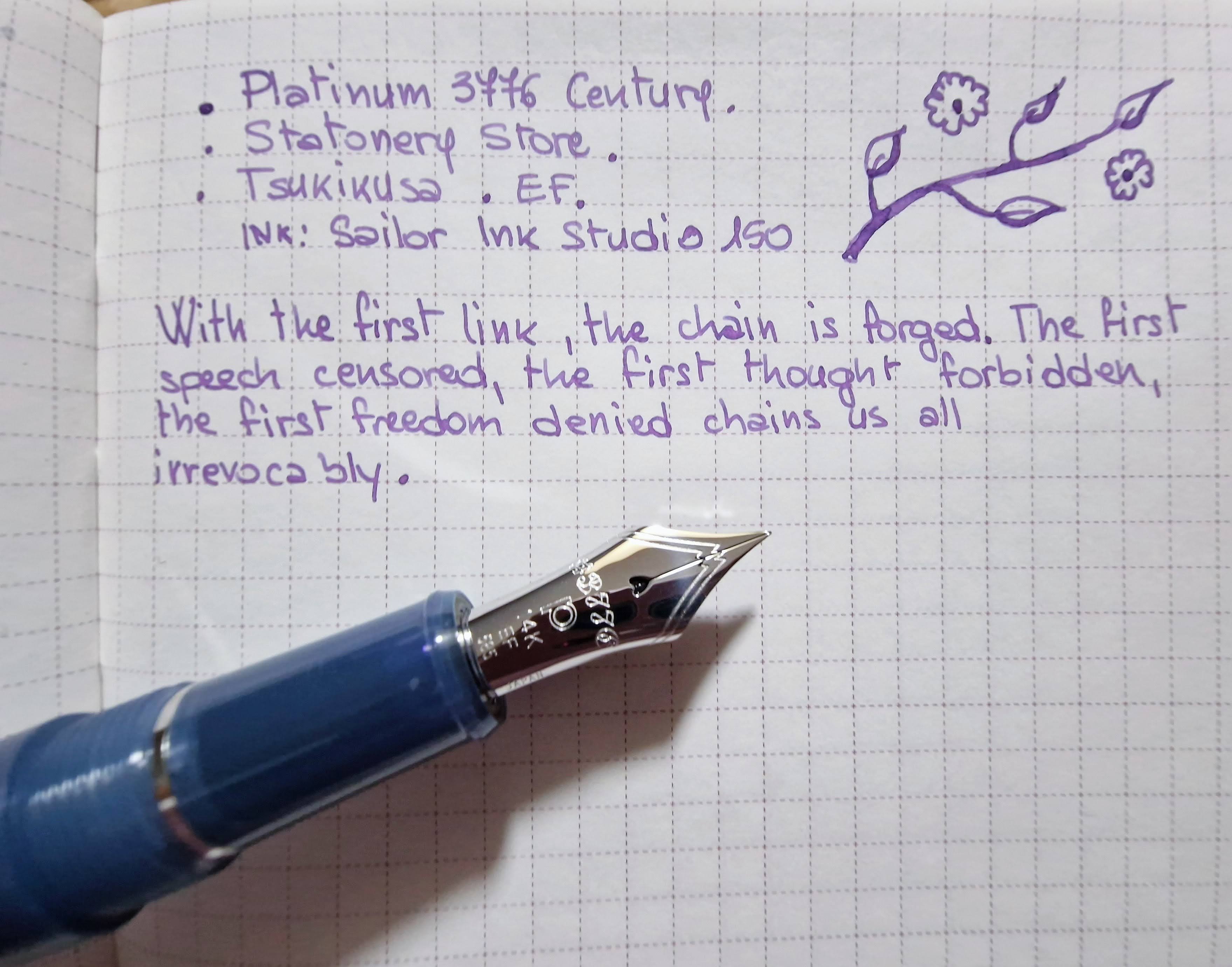 Dopo numerosissimi excursus fatti sulle mie numerosissime versioni di Platinum 3776 Century, non saprei cos'altro dire del pennino. E' sempre una garanzia, sempre fantastico (per me).