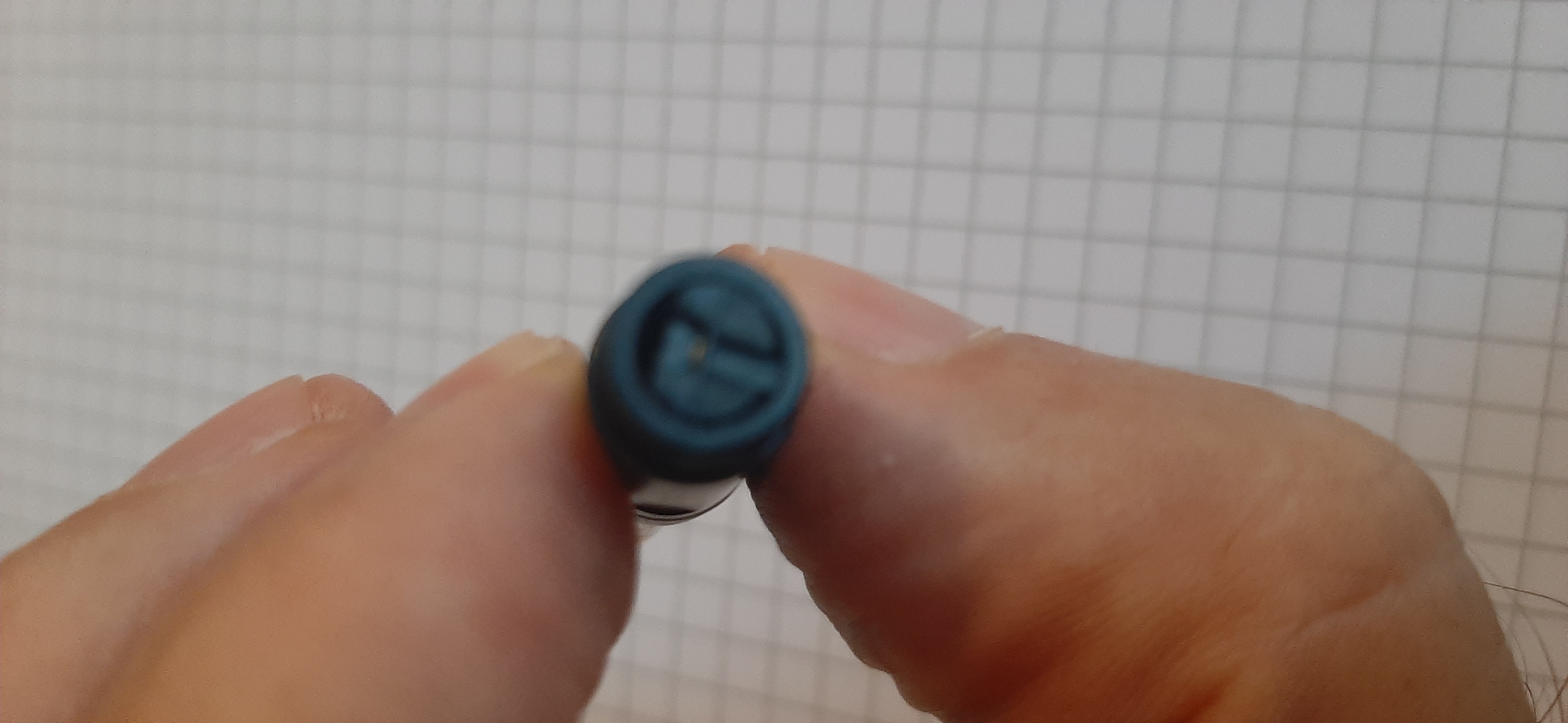 Pennino smontato, ecco come si presenta, lunghezza del collettore 2 cm, diametro esterno del collettore quasi 8 mm