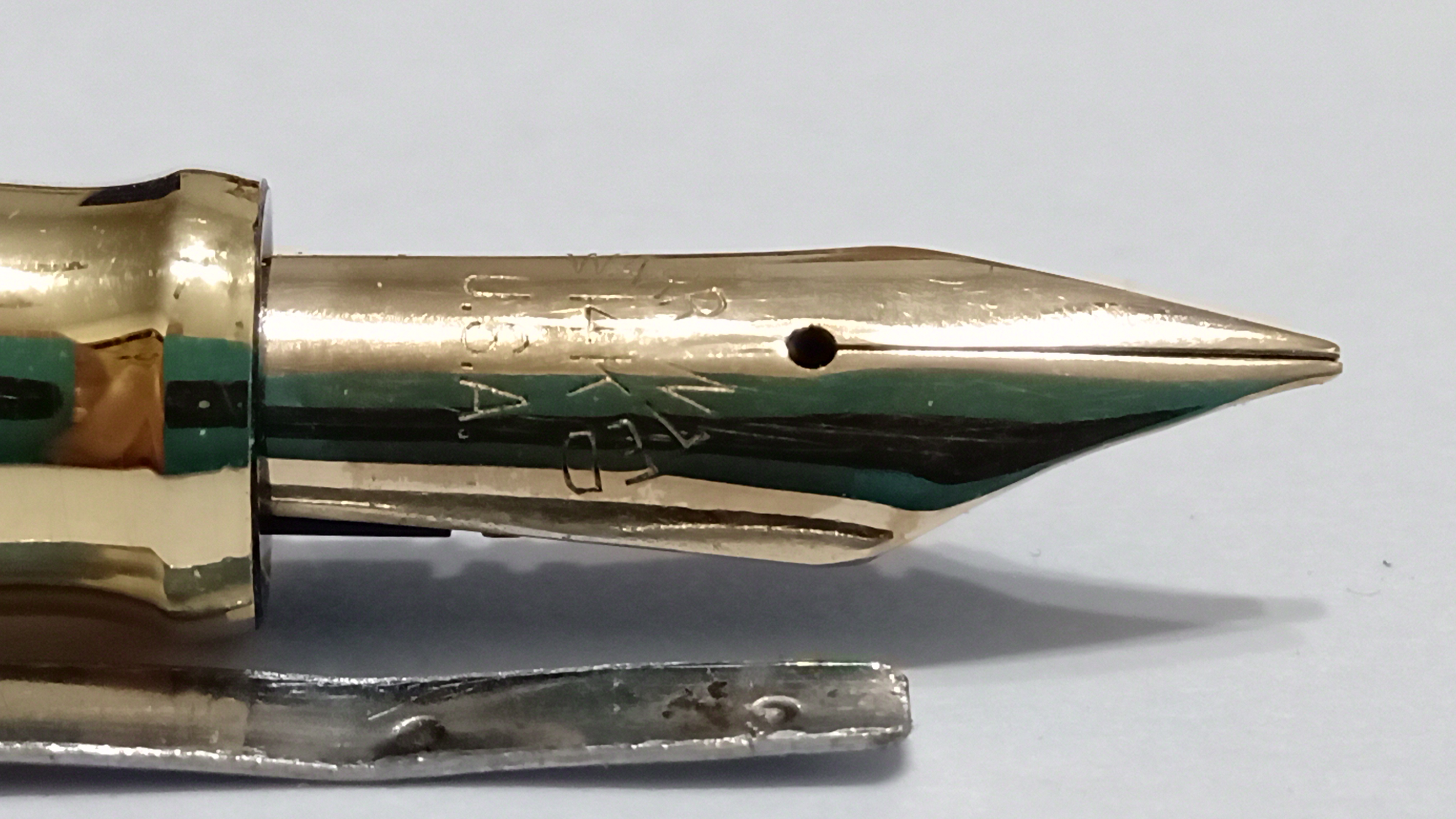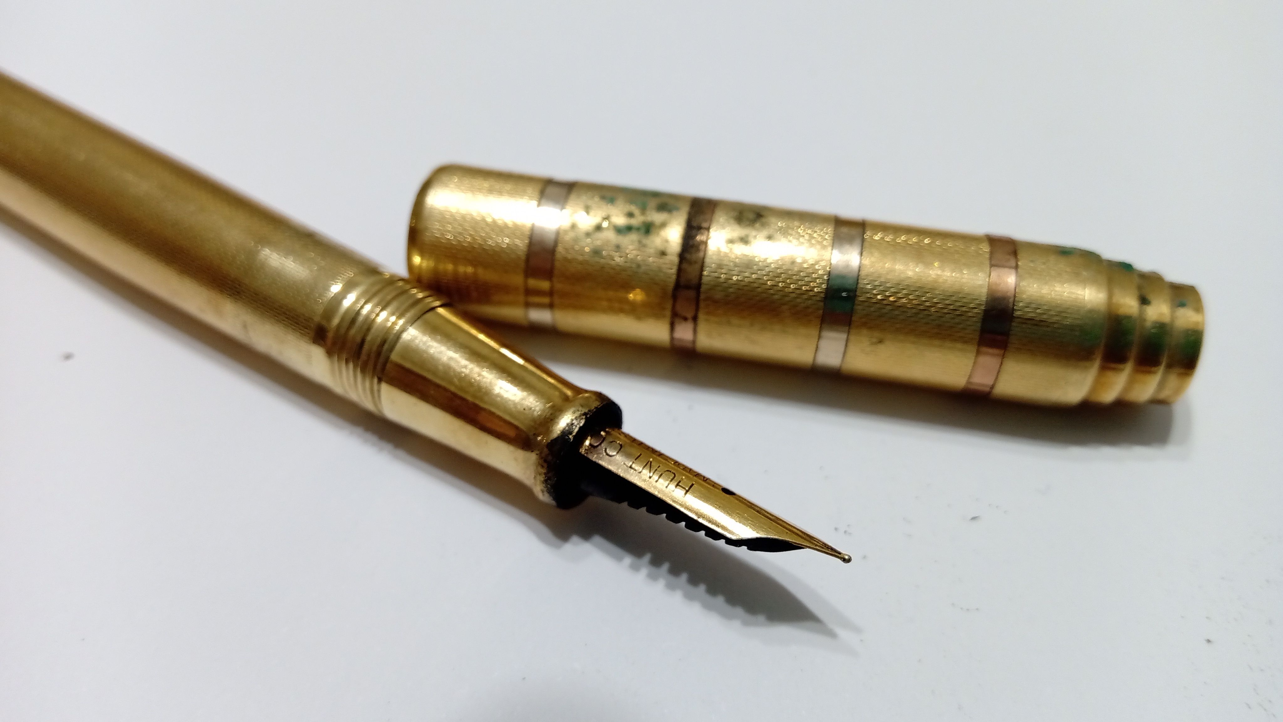 Il pennino che aveva montato con un alimentatore in ebanite era della marca Hunt Co., placcato in oro ed era in buone condizioni, anche se il rivestimento dell'estremità dell'impugnatura era in condizioni problematiche...