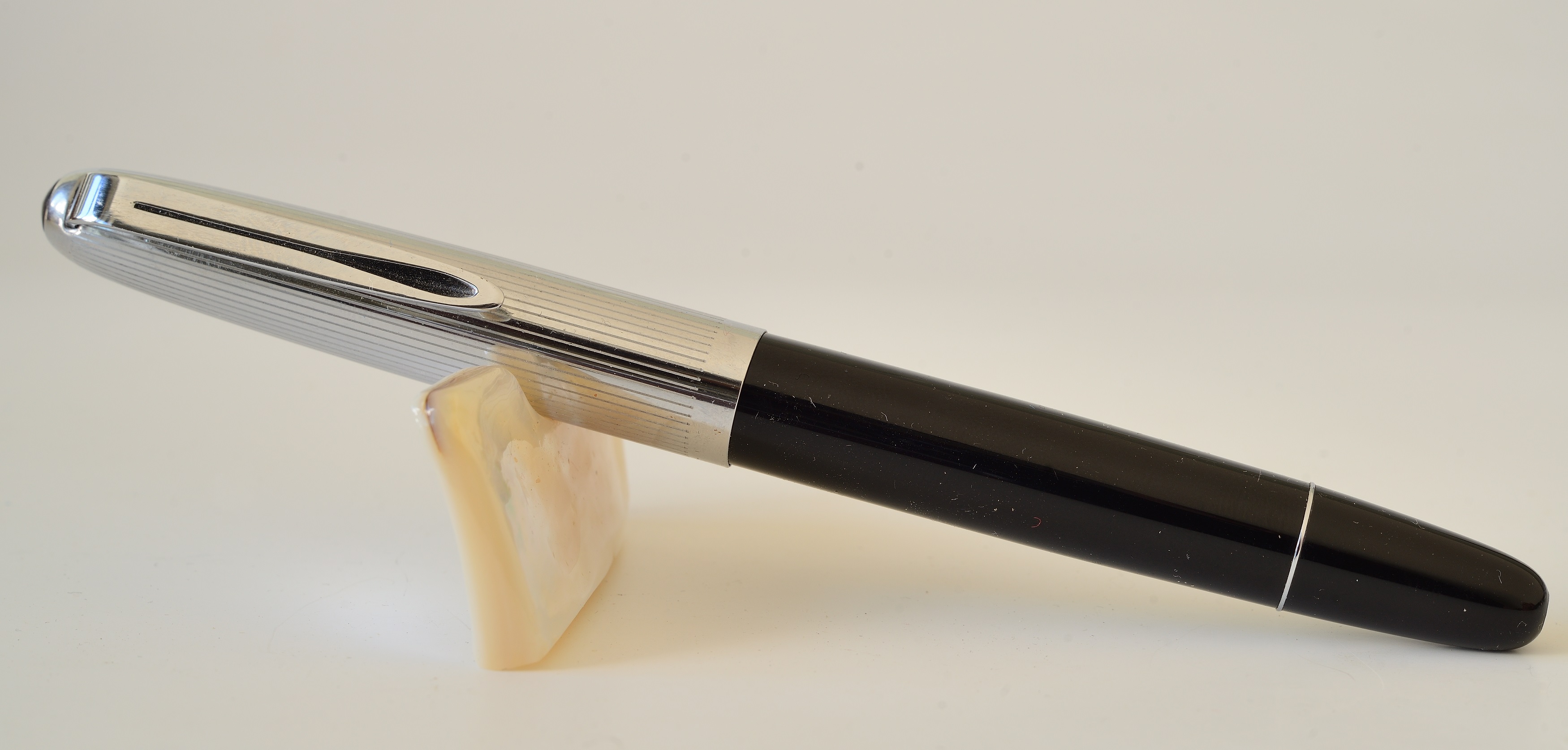 Anche corpo e cappuccio (cromato e testina nera) appaiono intonsi e lucidi. Solo la scatola presenta alcune macchie, credo di umidità.