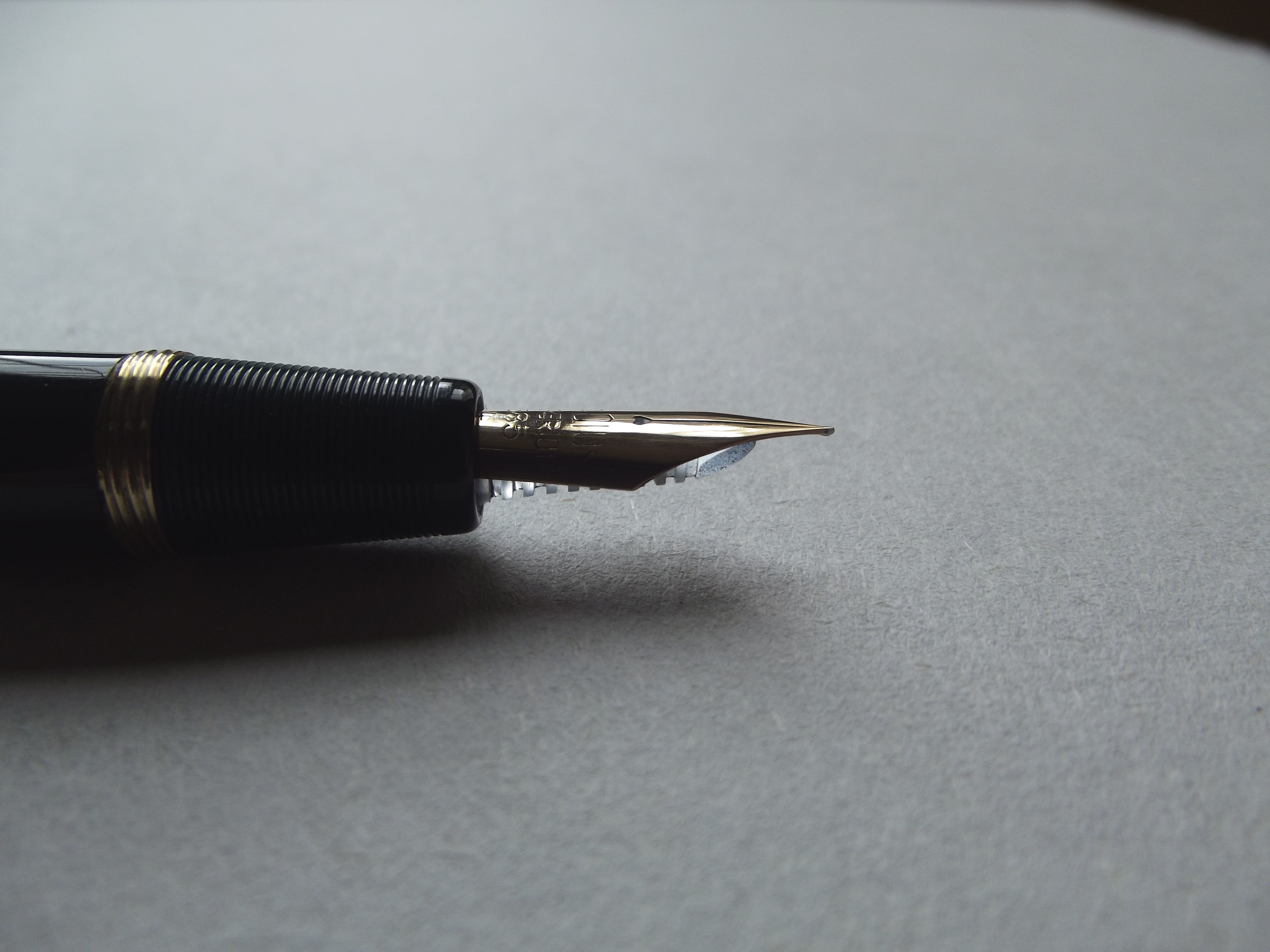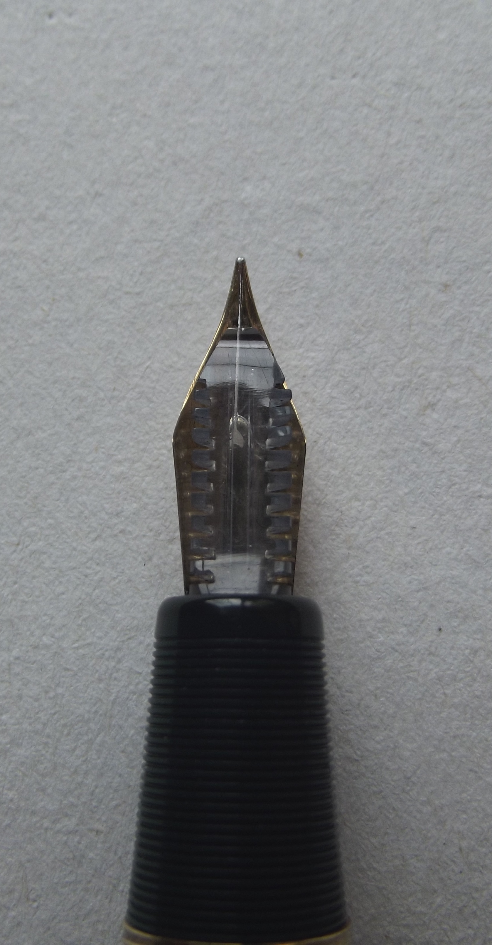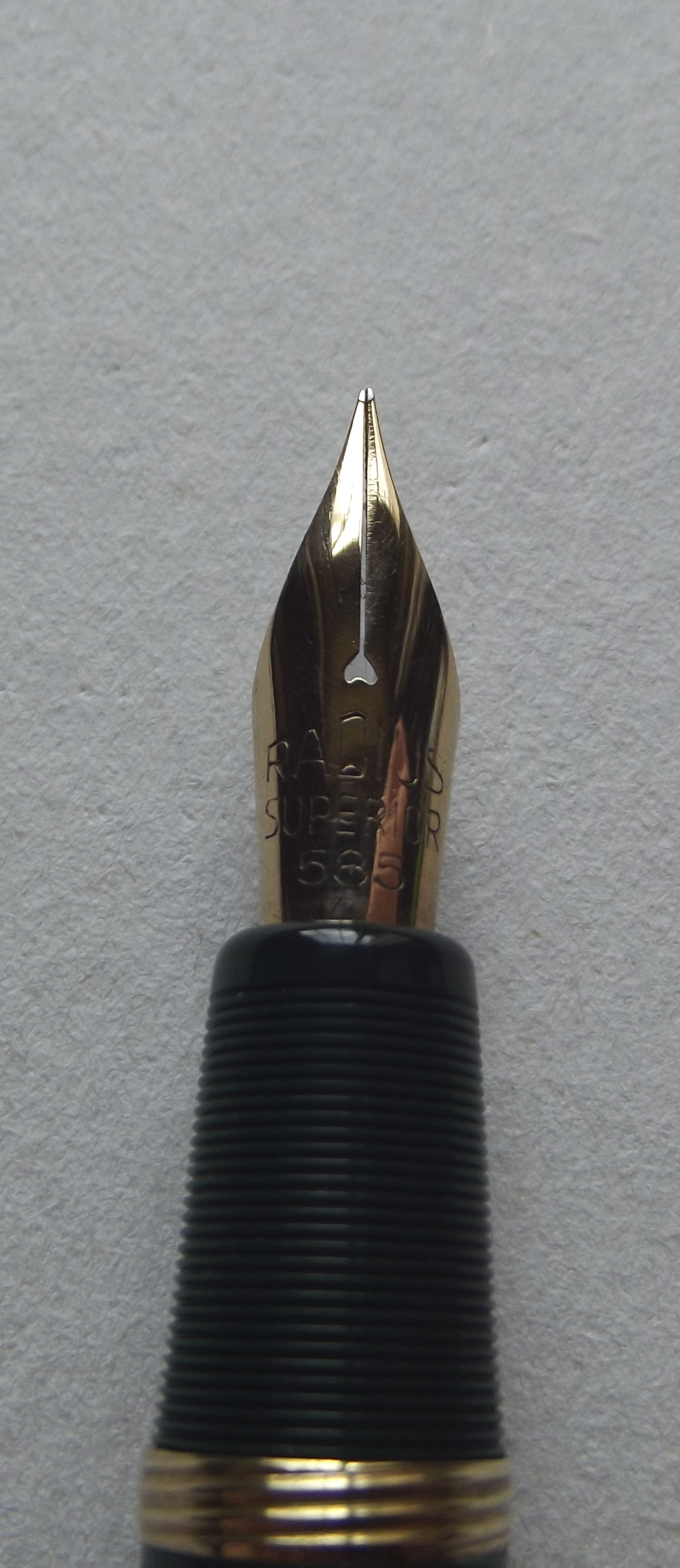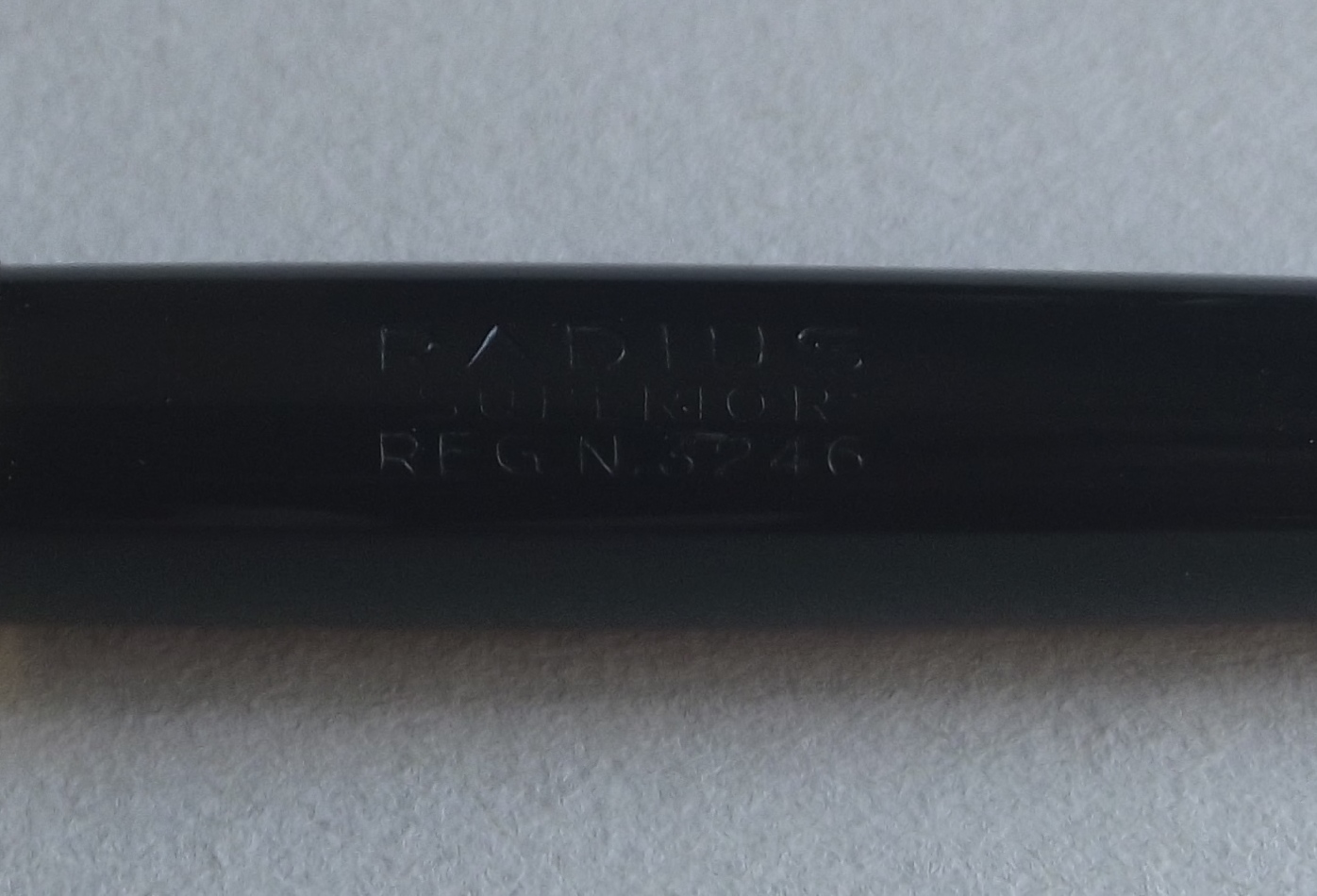 Grazie ad un amico che riesce a trovare il tempo per andare a mercatini, ho scovato qualche pennuccia italiana d'antan, tra cui proprio una Radius Superior. Nel mio esemplare, l'alimentatore è trasparente, e il pennino... guardate la prova di scrittura!