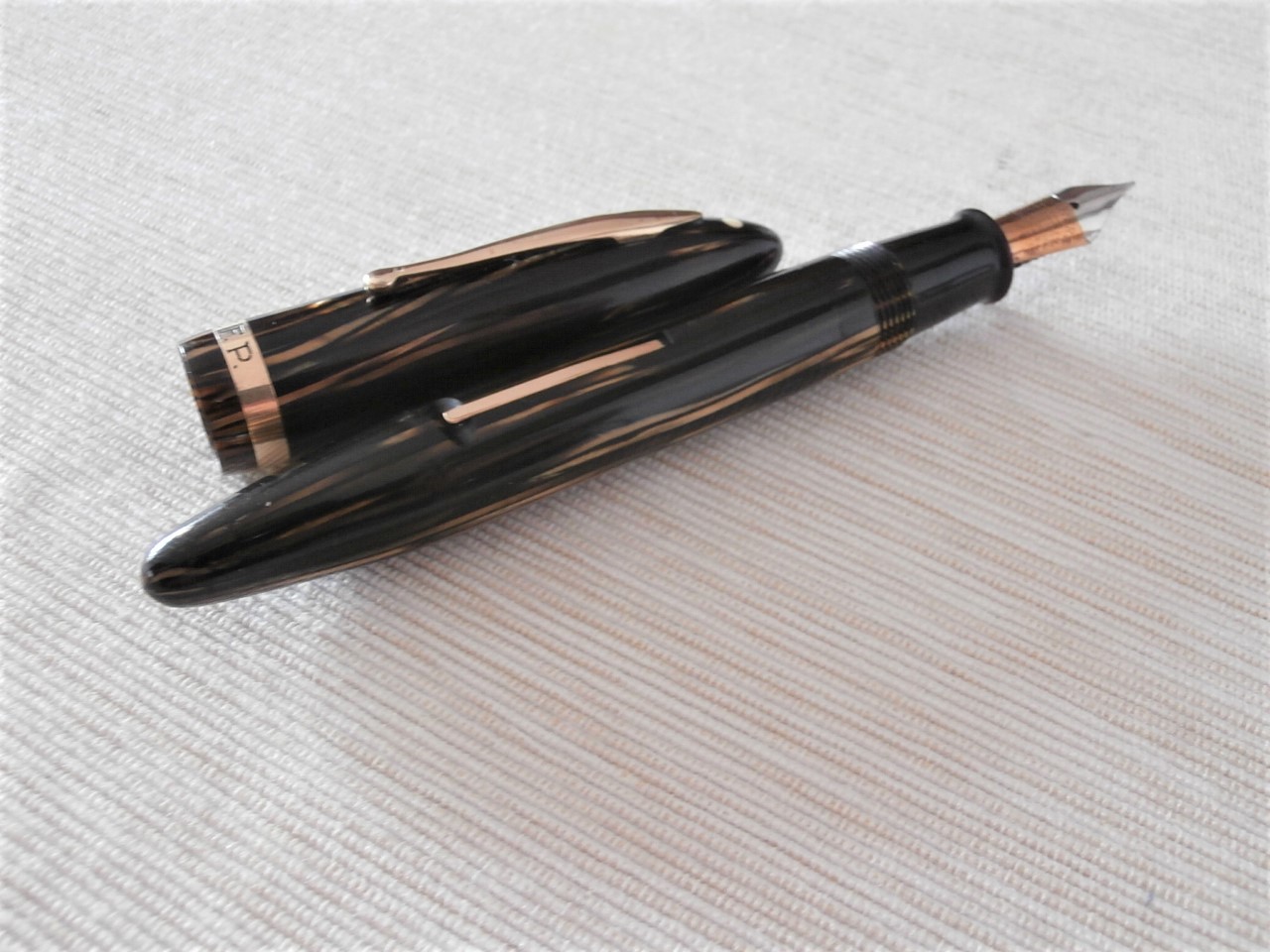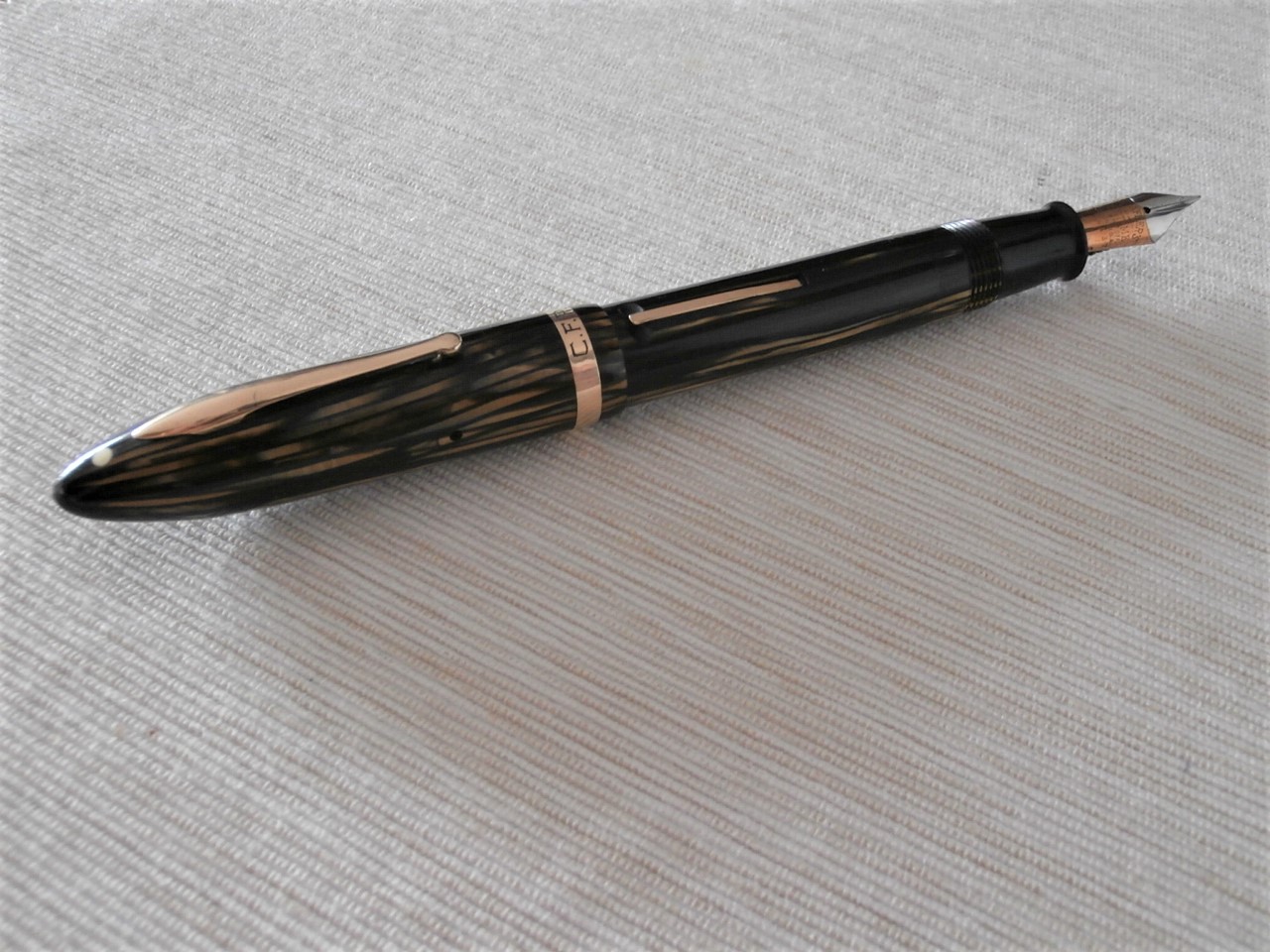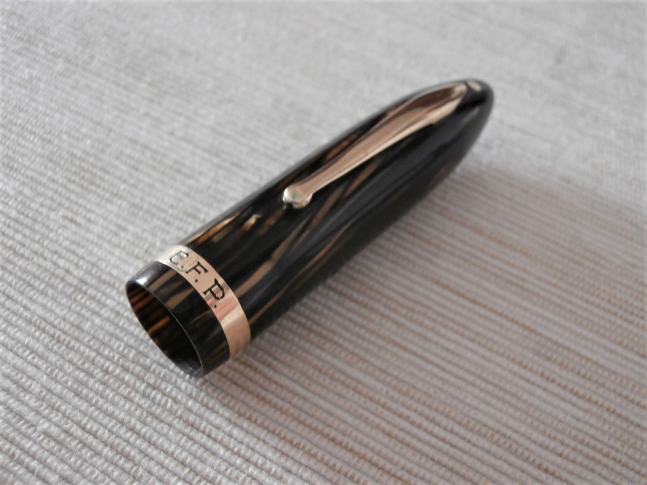 Questa l'ho recuperata al penshow di Roma del 2018, classica OS da 13,5 cm chiusa - 15,5 con cappuccio calzato, caricamento a levetta, pennino Fine rigido come da tradizione della casa.