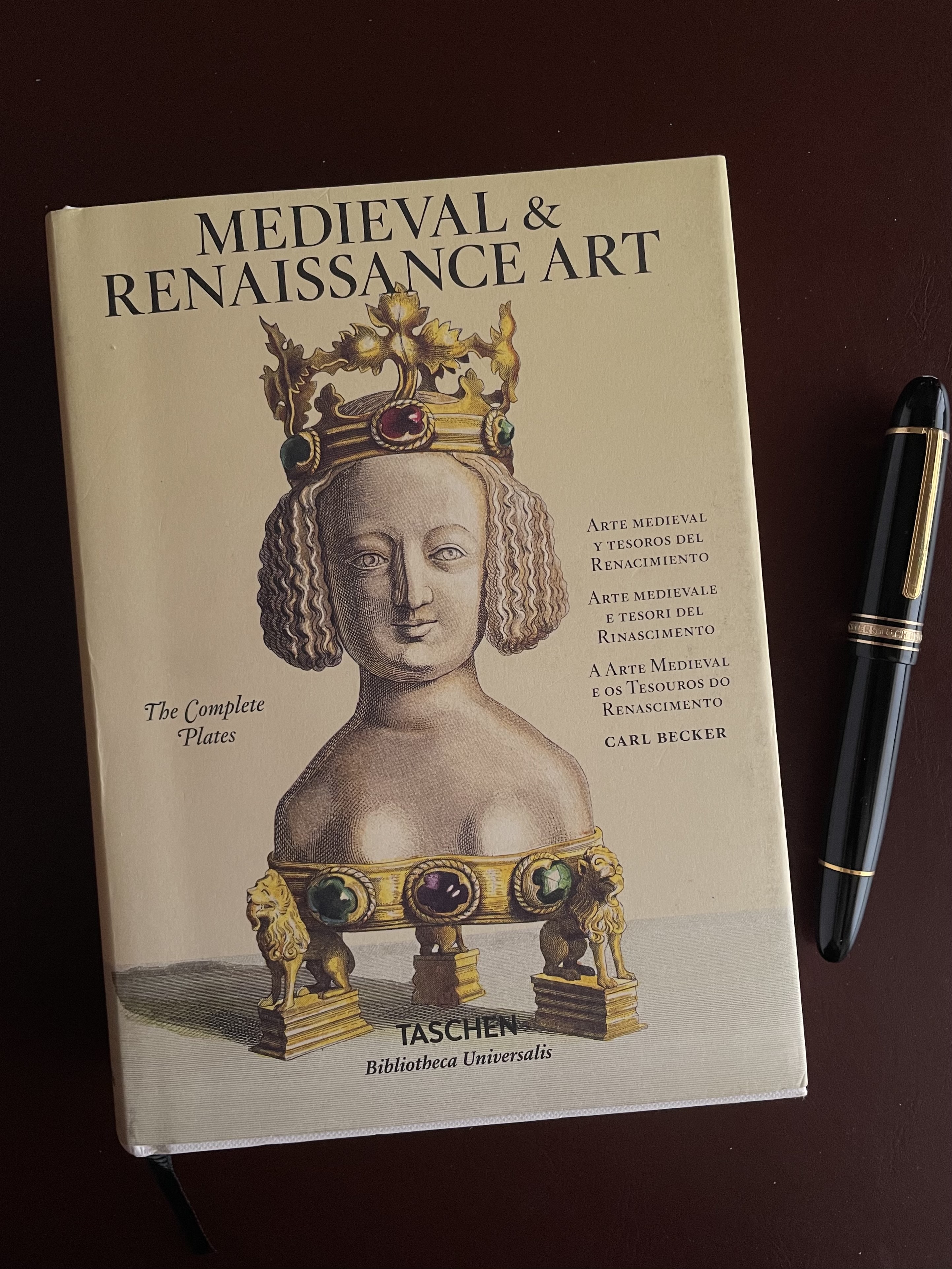 Vi sono libri che acquisto perché mi sembra possano fornire buoni spunti per un soggetto quando mi sento in vena di disegnare. Uno di questi libri é Medieval & Renaissance Art, della collana "Bibliotheca Universalis" di Taschen, la riedizione di un'opera impressa originalmente in tr volumi (e in formato maggiore) tra il 1852 e il 1863. L'opera, edita da Carl Becker e Jakob Heinrich von Hefner-Alteneck, riunisce oltre 200 incisioni in rame colorate a mano, che offrono un ampio panorama delle arti applicate in Europa (che includono mobili, sculture in metallo, gioielli, tappezzerie e opere di rilegatura) tra il IX e il XVI secolo. Hefner-Alteneck (1811-1903), che eseguí la maggior parte delle incisioni per il libro, diresse il Gabinetto Reale di Incisioni e Disegni di Monaco di Baviera, e assunse in seguito la direzione del Museo Nazionale Bavaro.