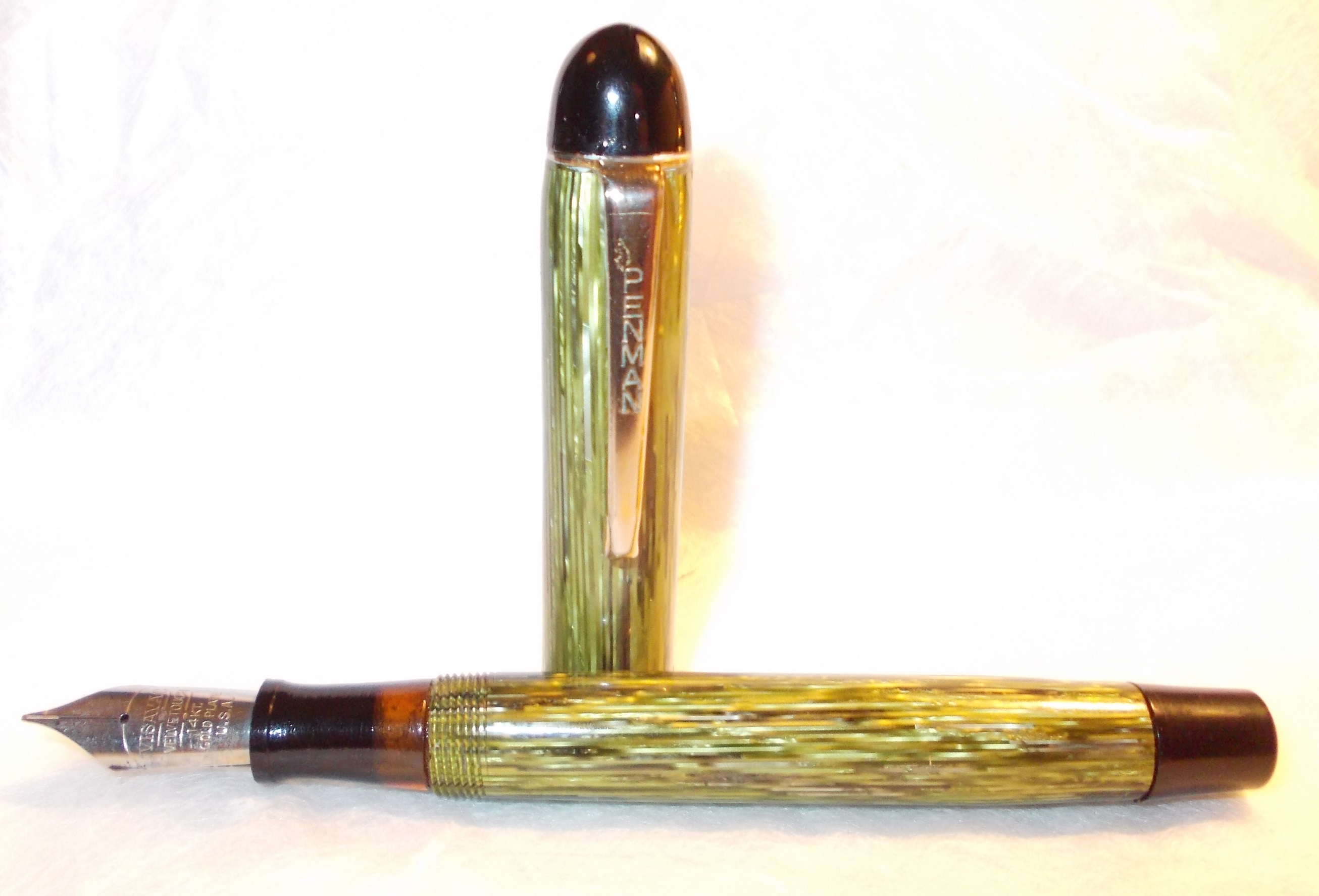 Queste le due ultime : Penman. Una con caricamento a pulsante di fondo e l' altra con un caricamento che almeno io non ho mai visto, cioè a siringa , col fusto che funge da serbatoio. Il gruppo pennino di quest' ultima non è fissato e francamente ho un pò paura, non vorrei mi inondasse d' inchiostro.