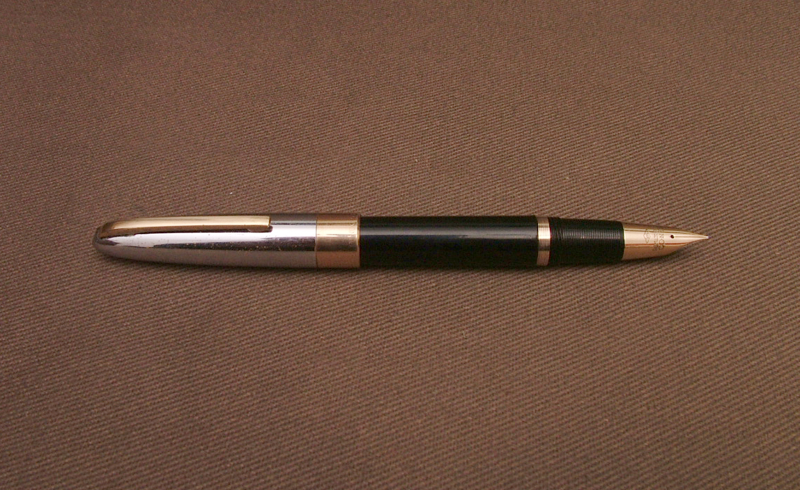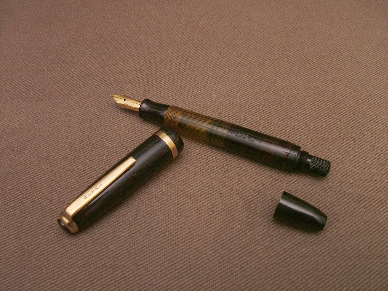 Una Royal presa senza sistema di carica, quindi non so se a pistone o tipo vacumatic, comunque io ne ho messo uno a pistone, sicuramente più pratico, sostituito il pennino che era distrutto e l'alimentatore che per portarlo a misura lo avevano inspessito avvolgendo attorno al pennino e l'alimentatore dello scotc.