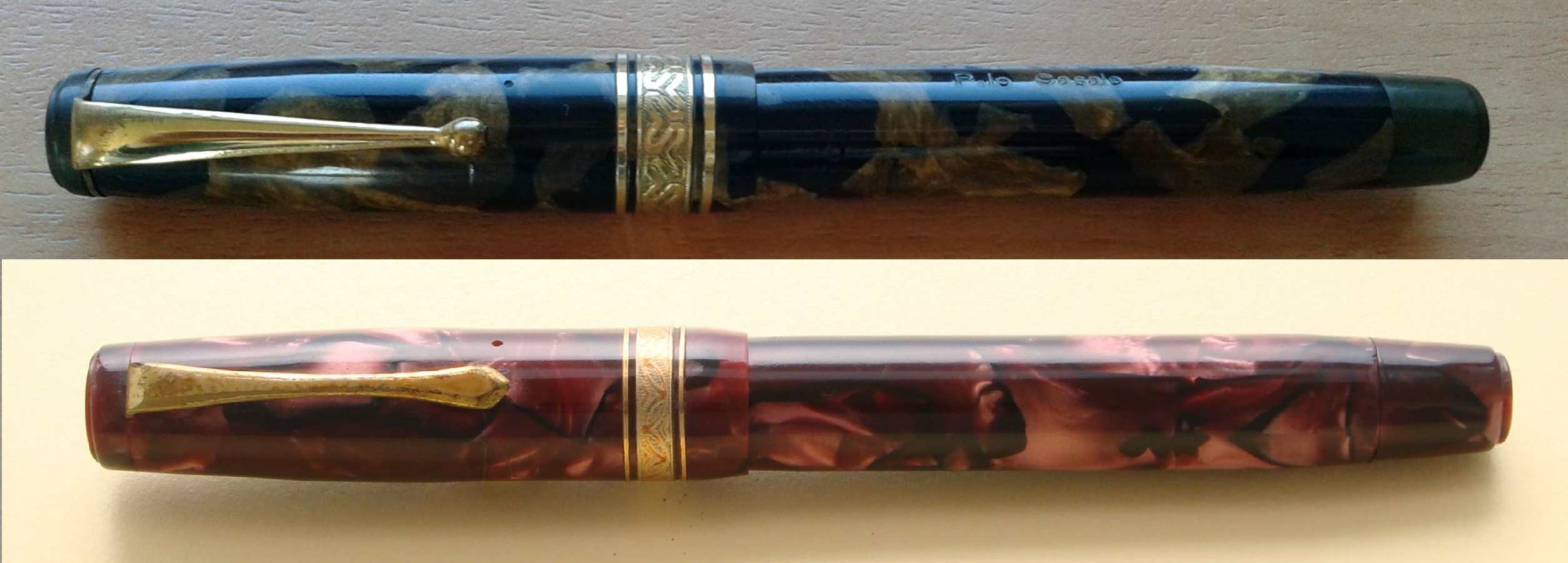 La seconda osservazione riguarda le proporzioni di una penna quando è prodotta in più di una taglia, come quasi sempre con le penne d'epoca: spesso i rapporti tra la clip (quasi sempre la stessa per tutte le misure!!) e tutto il resto fanno pensare di trovarsi di fronte addirittura a modelli completamente differenti...
