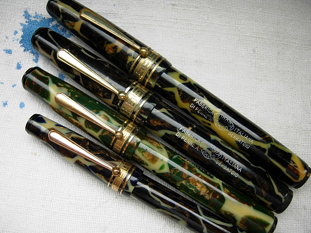 Certo la foto del Gran Maestro, con quel tripudio di colori, è una gioia per la vista, ma devo confessarti che nessuna di quelle penne prese singolarmente mi scalderebbe più di tanto. Di quell'epoca, e con celluloidi di uguale bellezza, ci sono penne di Columbus, Ancora, Omas, etc. che personalmente io preferisco (ma che purtroppo pure mi mancano :D).