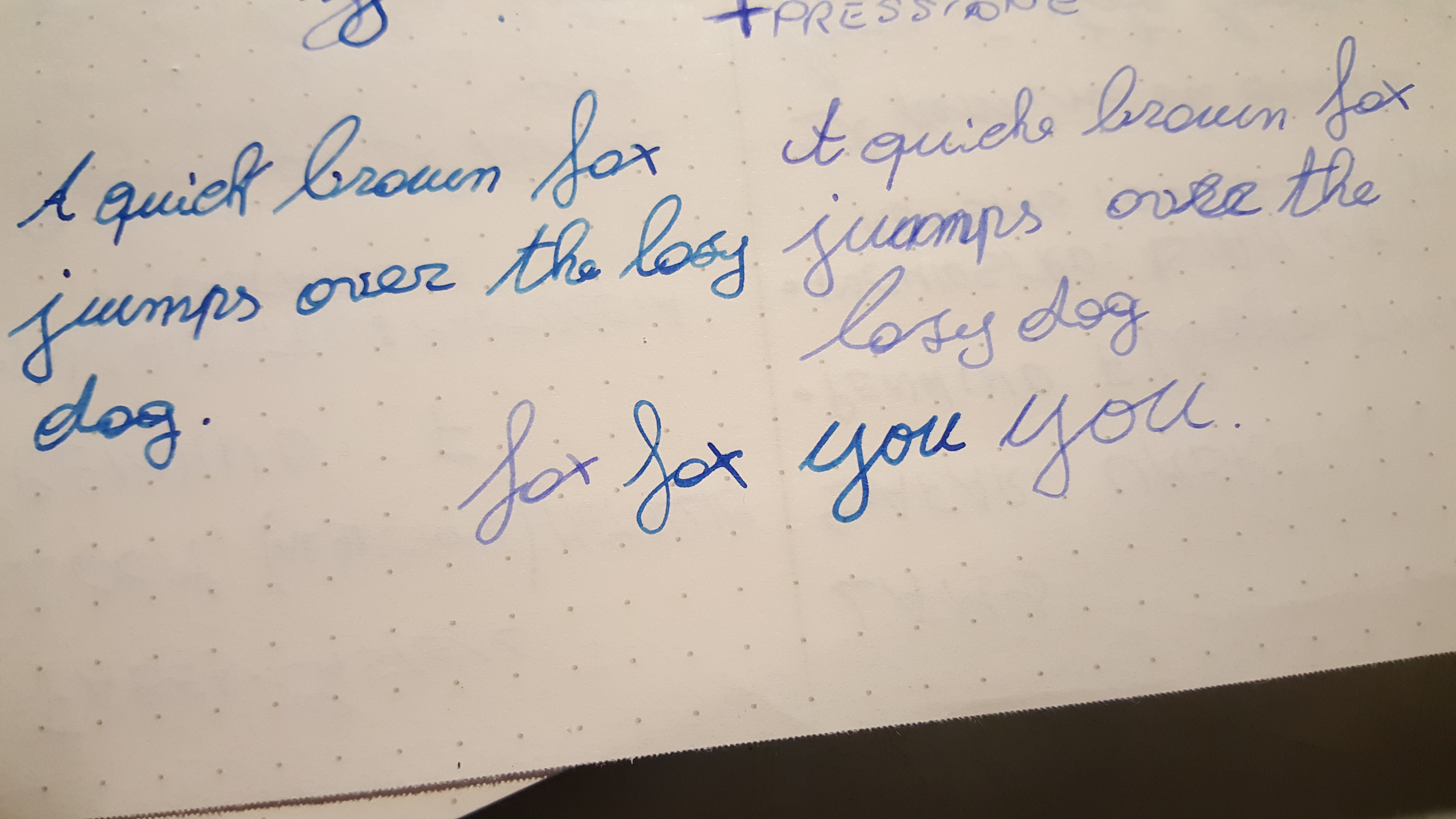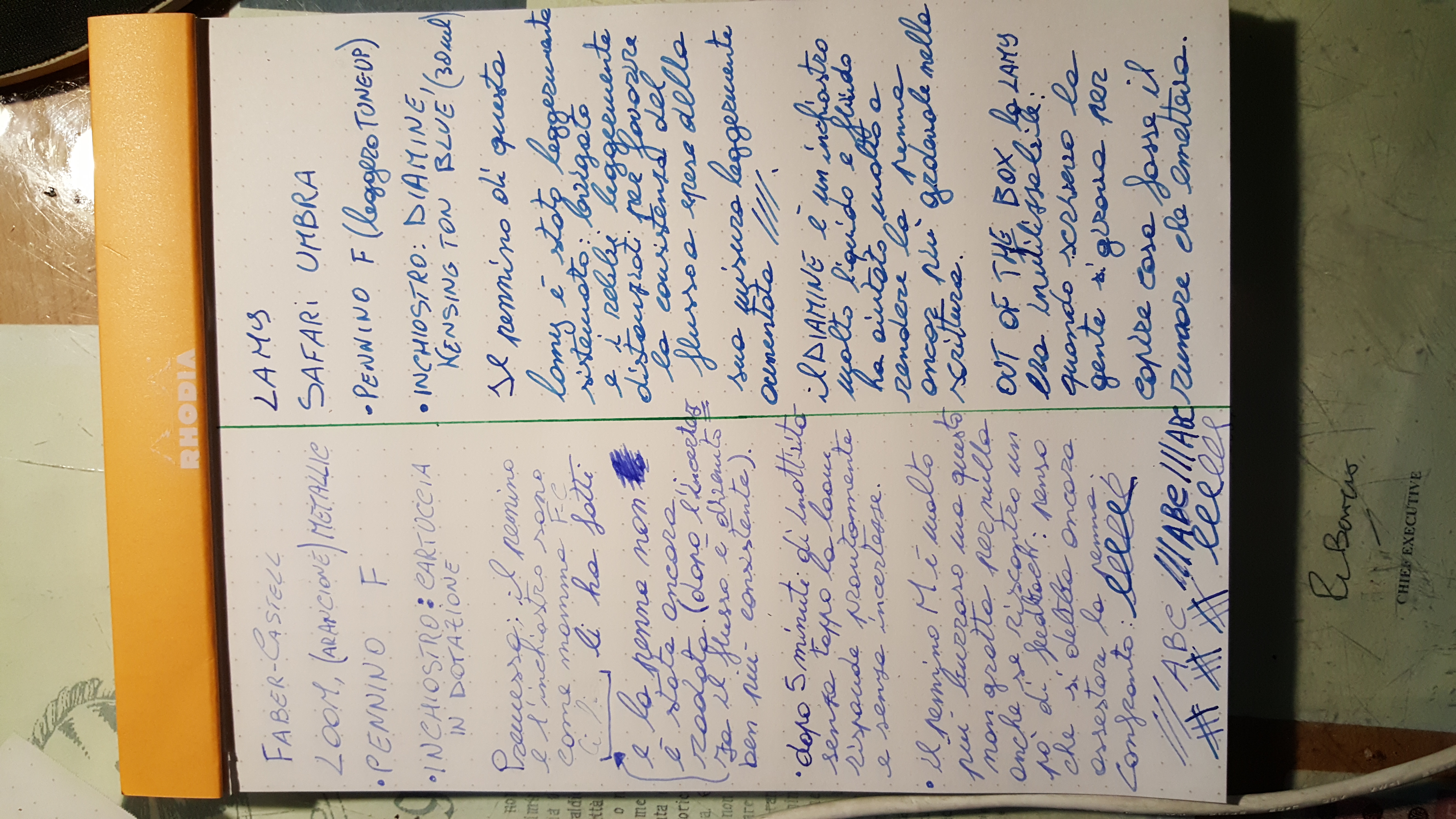 -l'inchiostro della Faber-Castell era quello standard fornito dalla casa (così a naso non mi sembra per nulla paragonabile alla fluidità che concedono inchiostri come pelikan e aurora, rifarò a breve il test)