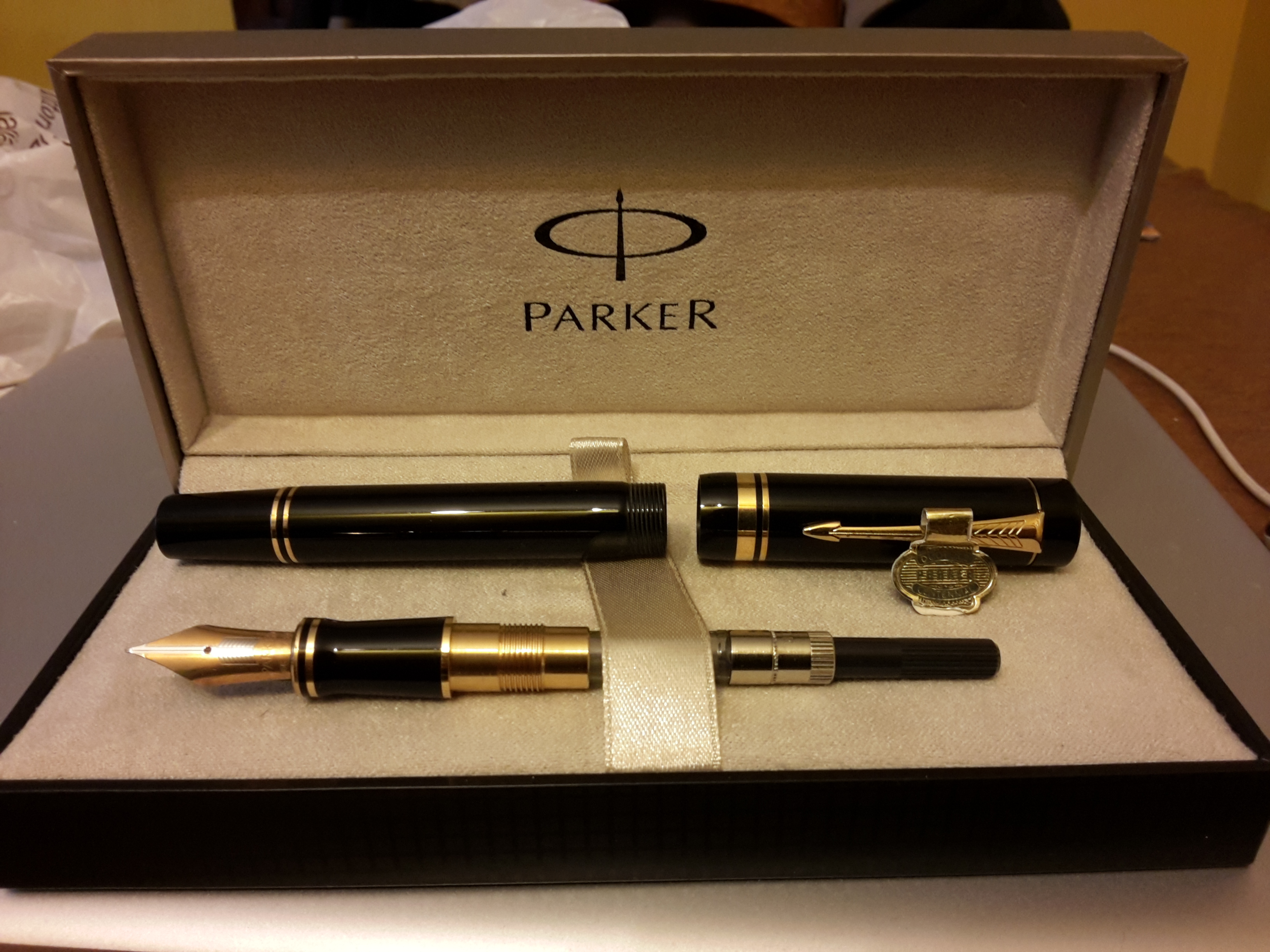 Oggi ho iniziato ufficialmente la mia collezione di stilografiche con una Parker Duofold Centennial , interesse sempre un po' frenato ma oggi quando sono entrato in negozio ed il commesso mi ha iniziato a far vedere e toccare questi gioielli ho deciso che sono un buon toccasana per l'animo.