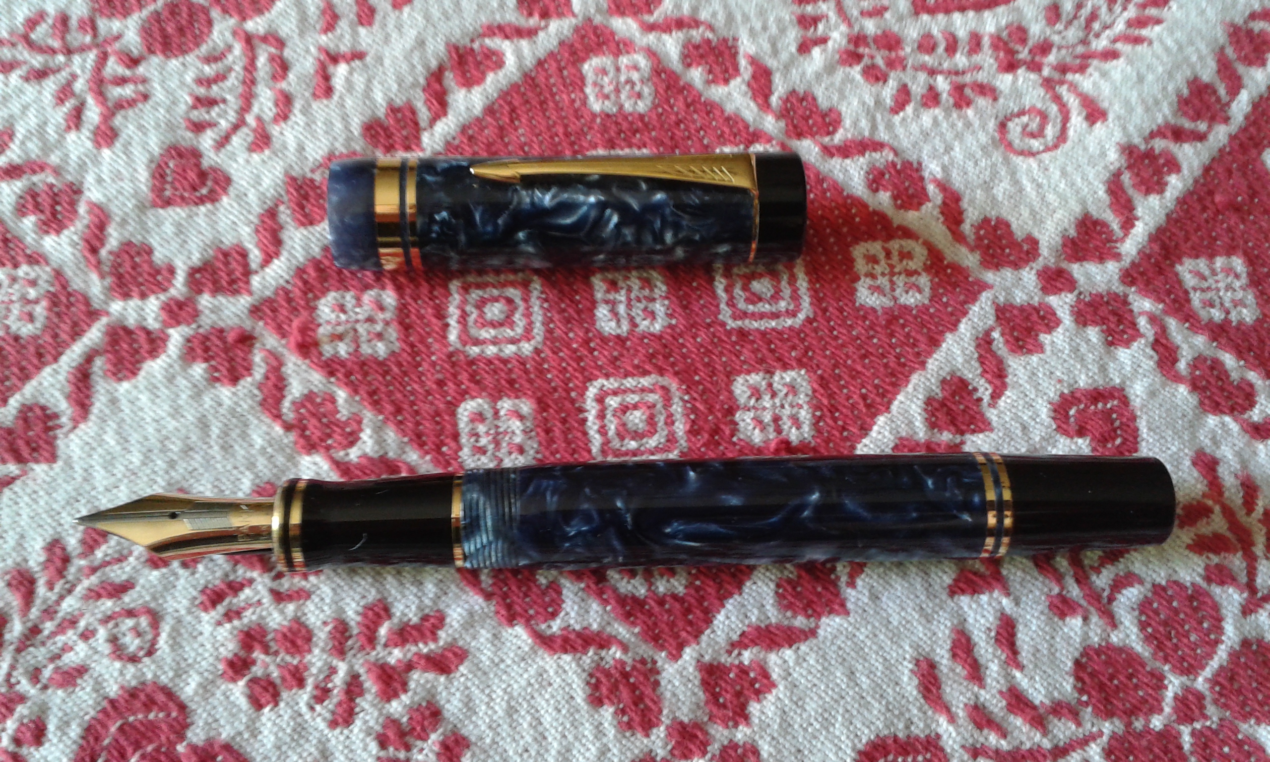 E' la versione marmorizzata blu, esattamente il colore che ha postato Fockerwulf, con la sola differenza che la mia e' la versione anni '90, quindi ha la clip leggermente piu' lunga e le verette sul cappuccio e sul corpo penna lievemente bombate.