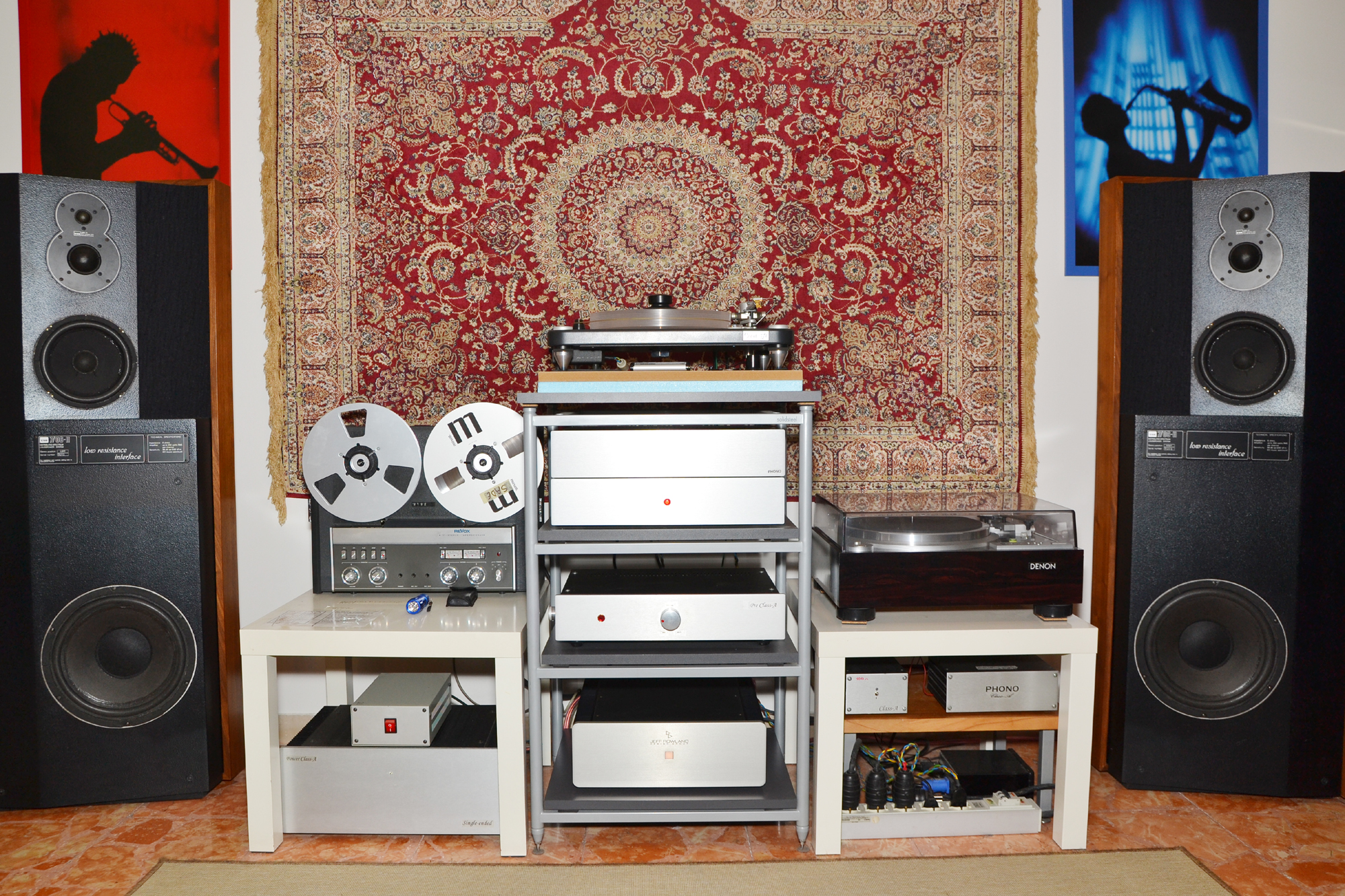 Ho un discreto impianto che mi da grandi soddisfazioni, 2 giradischi con testine MC , un registratore a bobina, 2 pre-phono un preamplificatore un finale e due monoliti come diffusori.