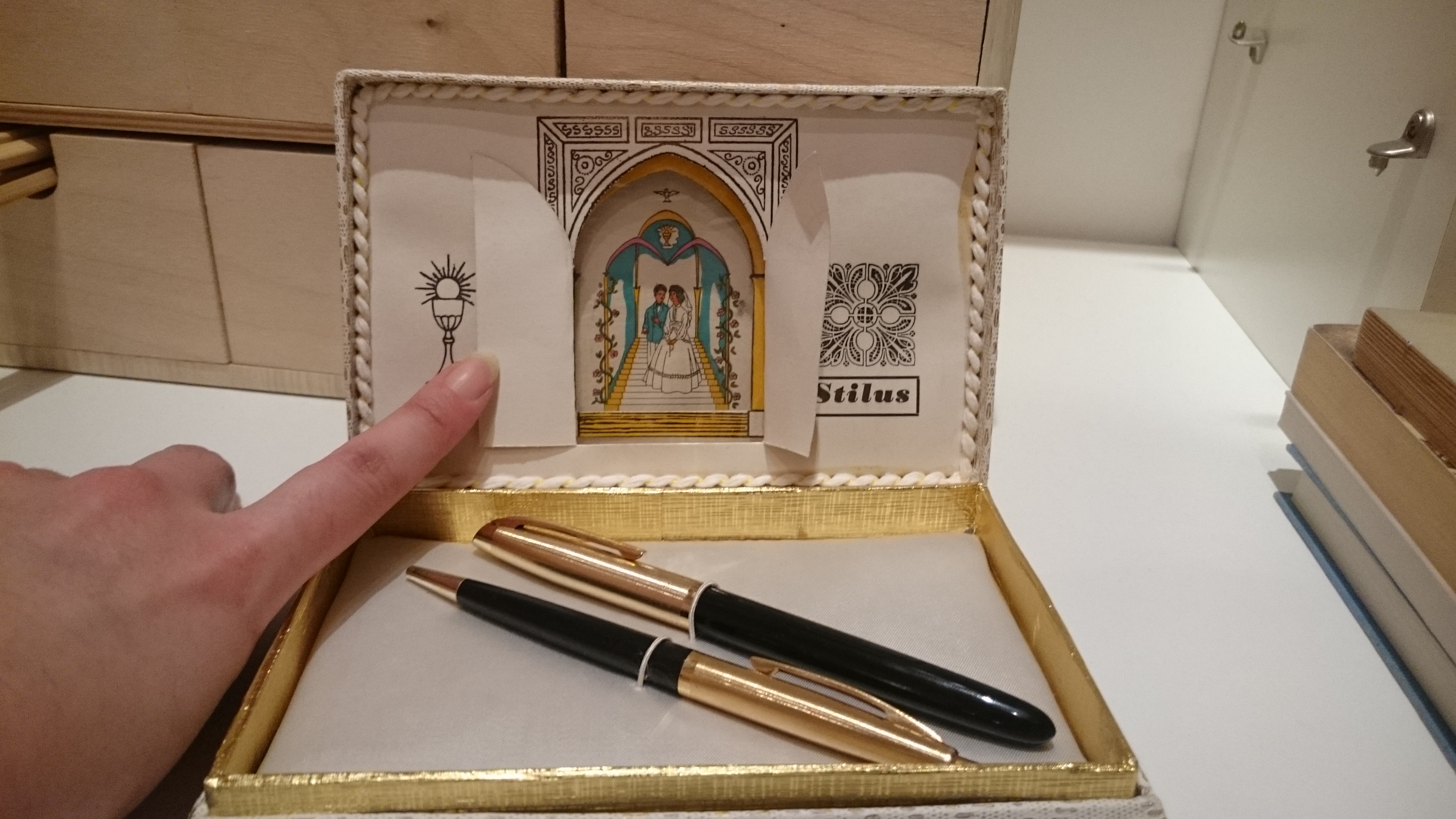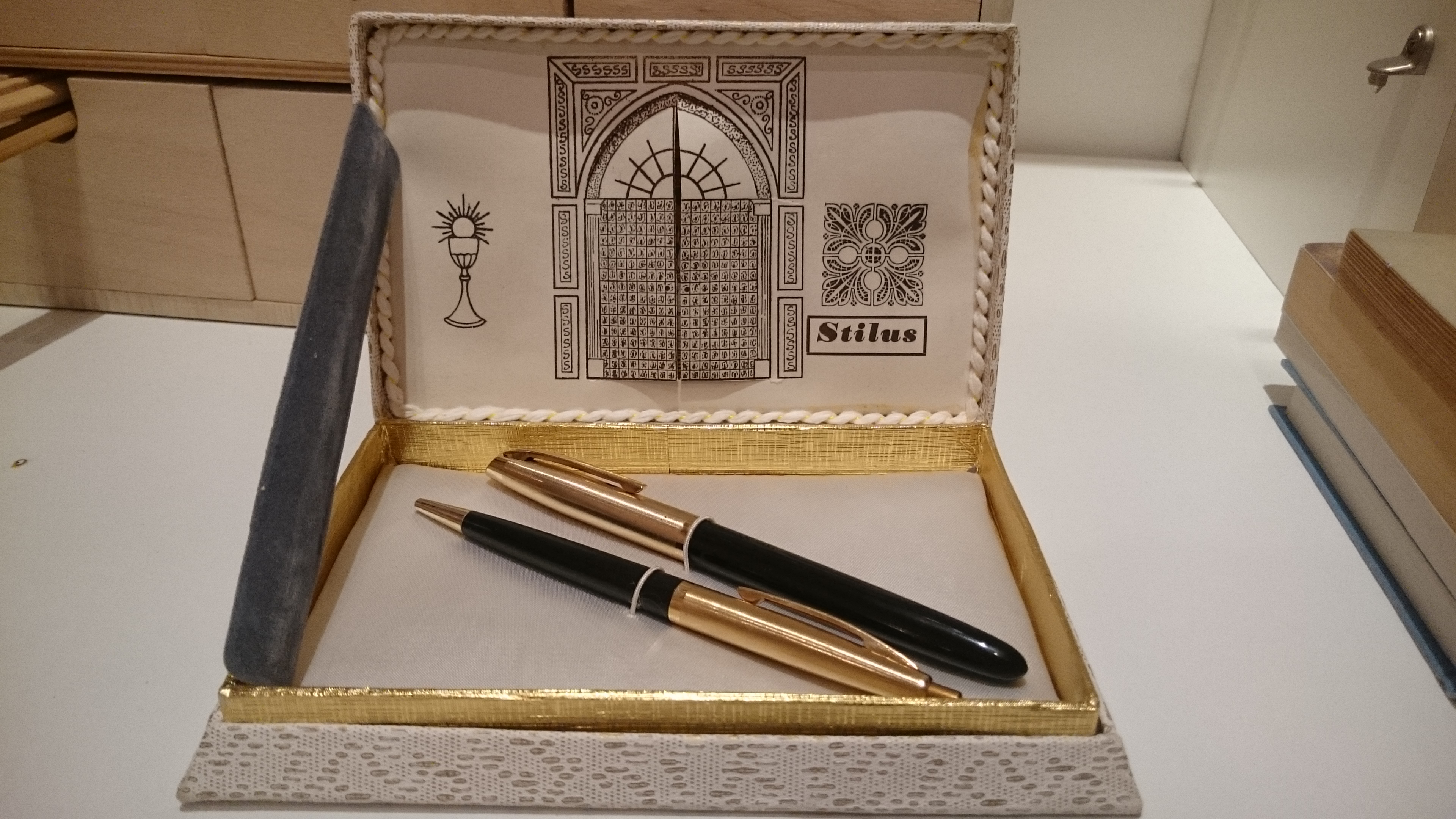Sulla scatola, che sa tanto da bomboniera, è riportata la scritta "Stilus" presumibilmente dell'omonima azienda torinese (supposizione mia) attiva nella prima metà del 900.