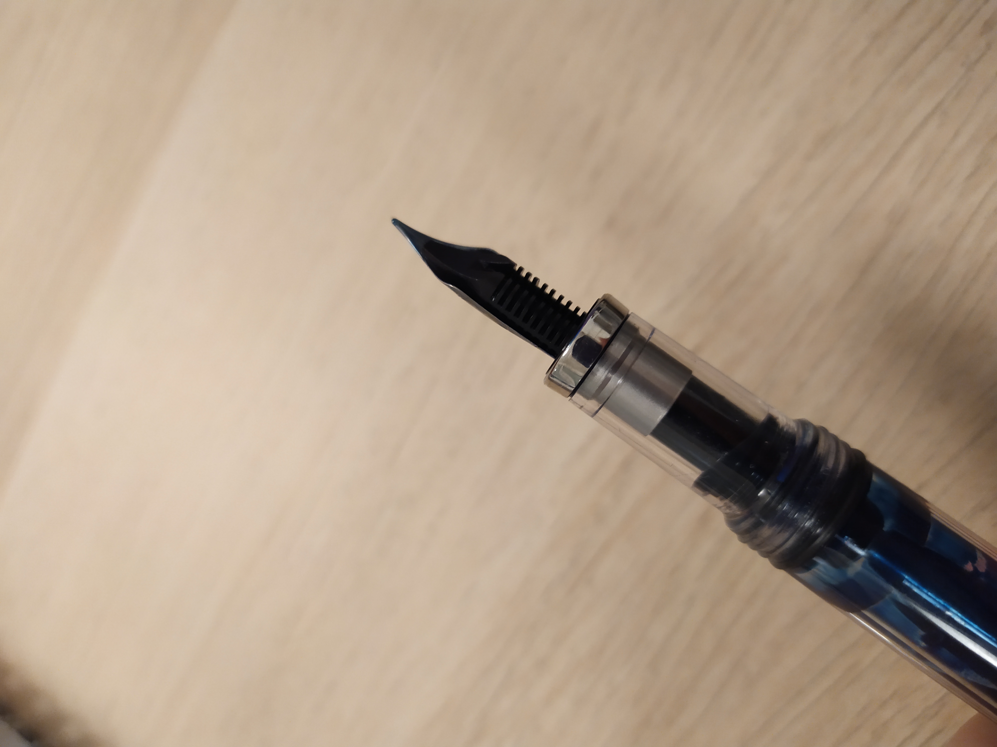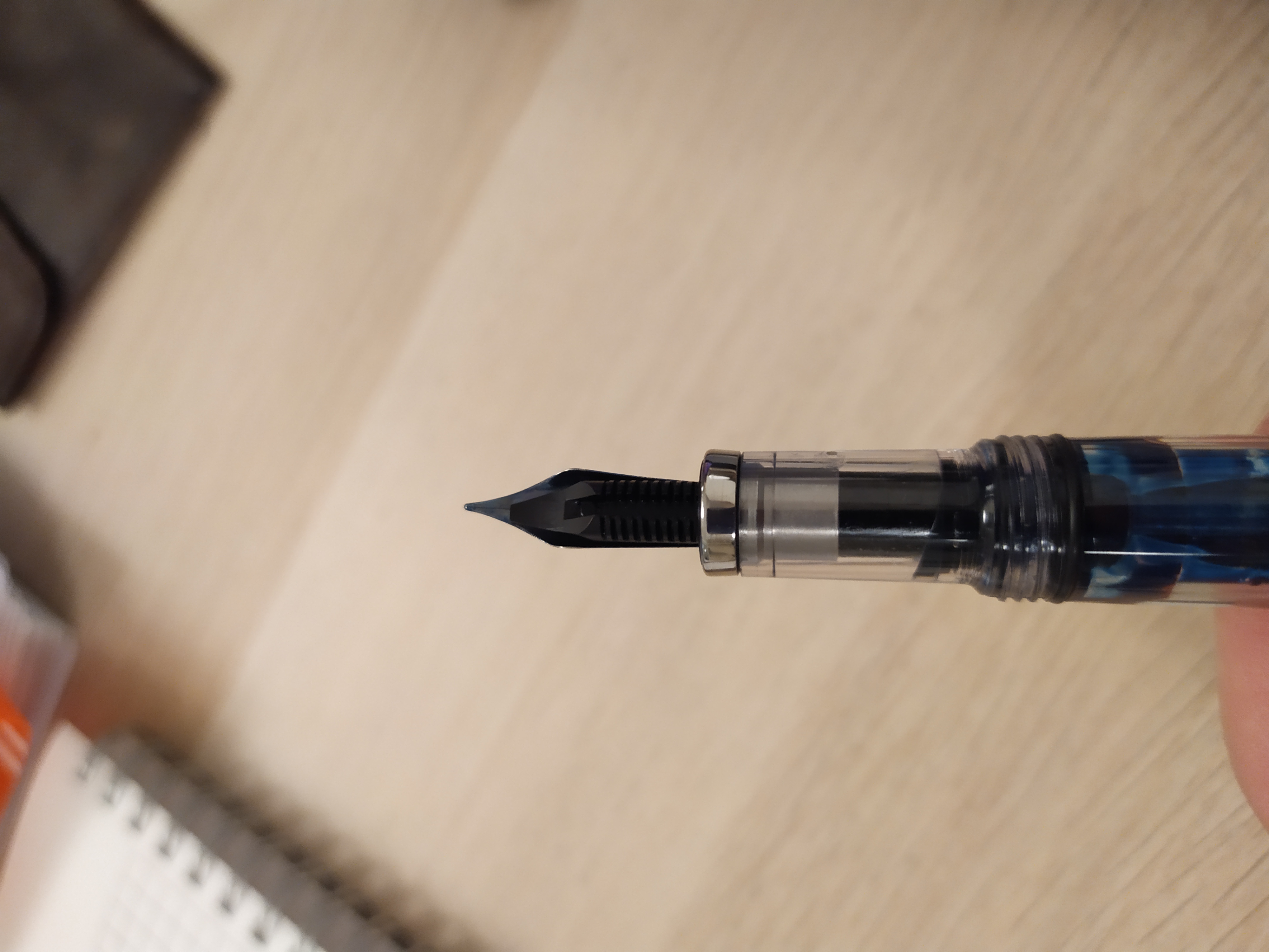 Quindi, riassumendo, inchiostro nella sezione pure se ho messo grasso sulla parte nera che si avvita alla sezione trasparente; mancanza di alcun flusso; di solito invece è anche troppo e a un certo punto inizia a perdere goccioloni o ci si sporca le mani (alla fine della sezione, è talmente tanto l'inchiostro che è facile sporcarsi).