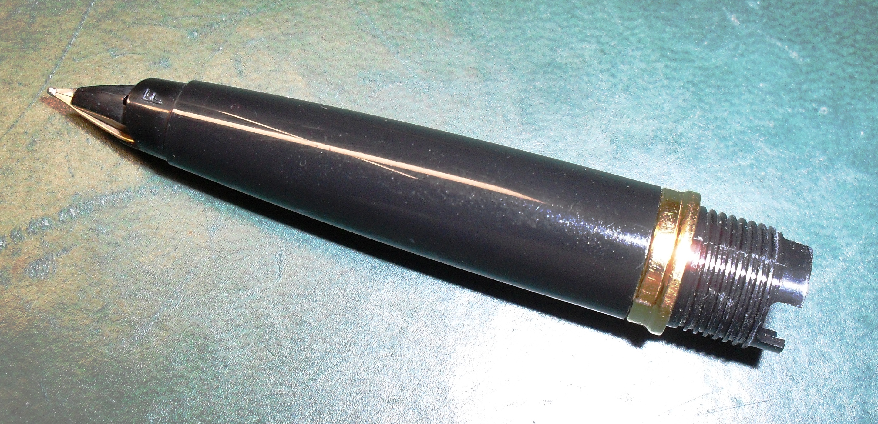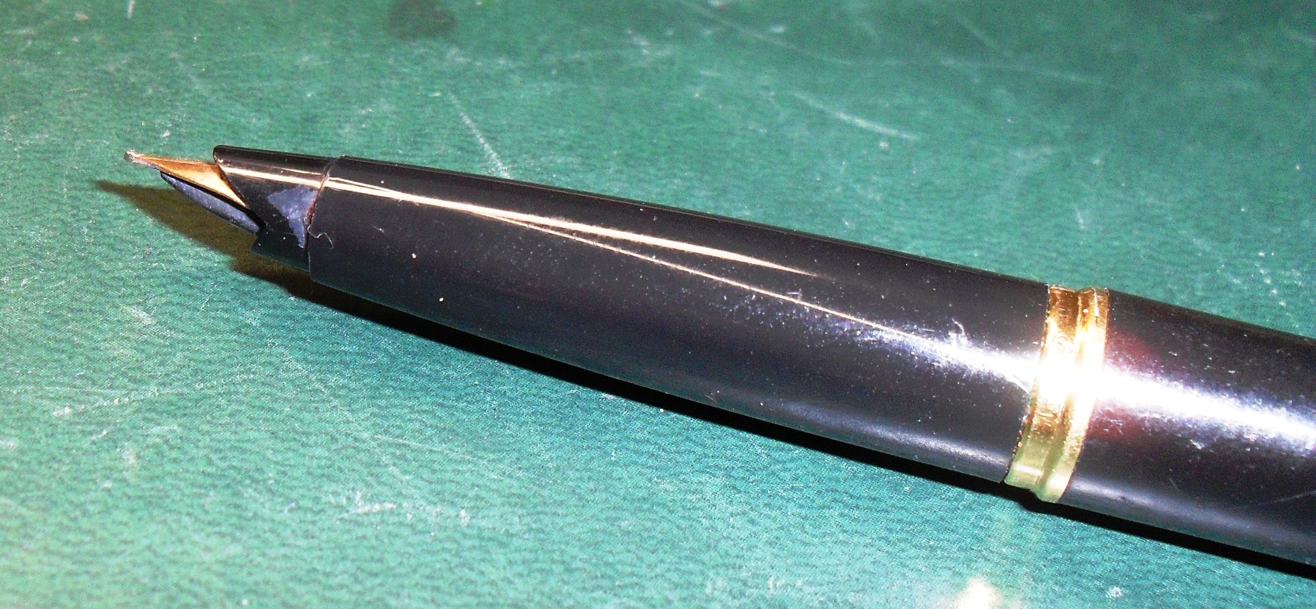 Il pennino smontato dichiara la sua misura (M), diversa da quella (F) evidenziata dalla parte inferiore della carenatura. Non ci vuole molto ad ipotizzare che vi sia stata una sostituzione.