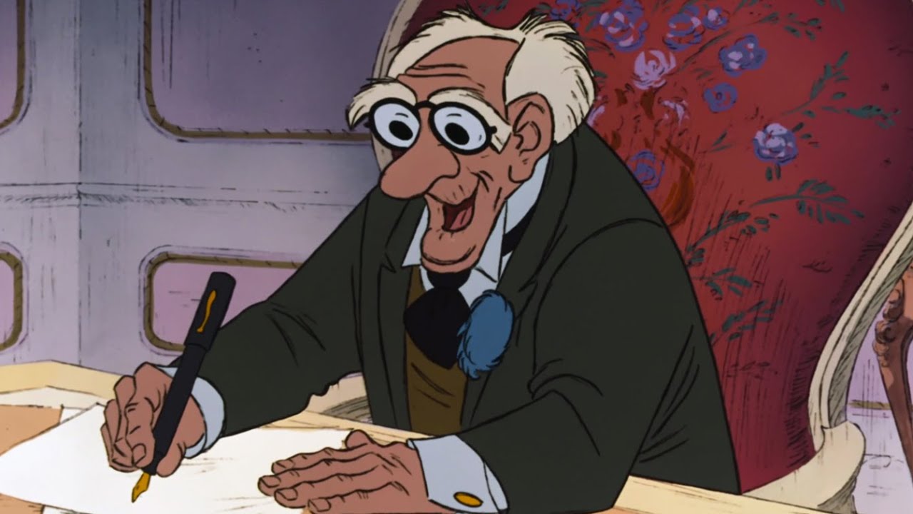 Ed ecco che, riguardando gli Aristogatti, mi sono imbattuto nel personaggio di Georges Hautecourt, l'avvocato che redige il testamento a Madame Adelaide Bonfamille, che usa: una stilografica in un "archetipo paradigmatico" forse dell'epoca del film (che è del 1970) o dell'ambientazione (siamo nella Parigi del 1910)...passo quindi la palla a chi vorrà indagare su quale modello il disegnatore avesse in mente.