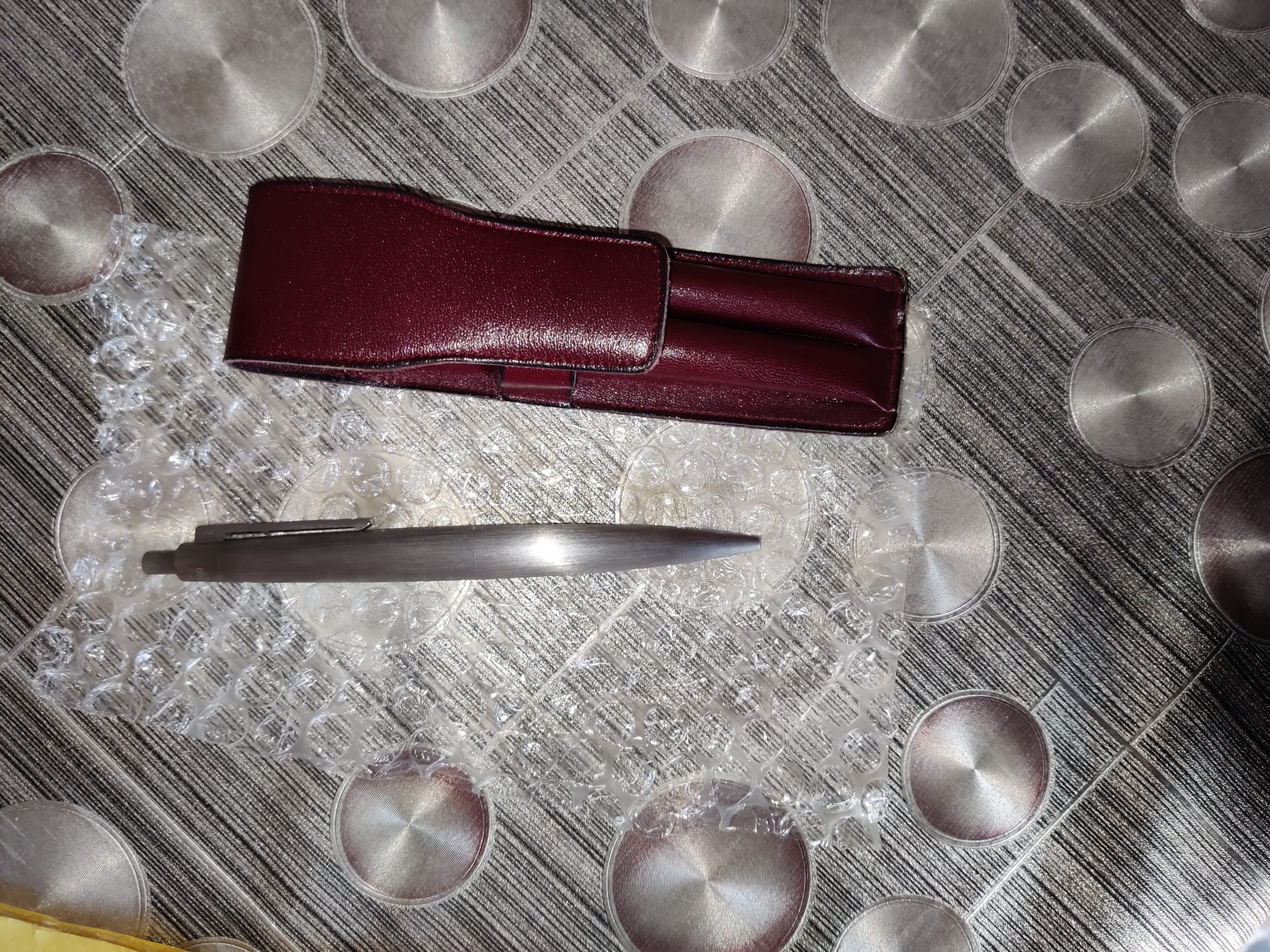 La penna arrivata oggi è la seguente: Lamy 2000 biro edizione limitata in acciaio con custodia Lamy in pelle rossa