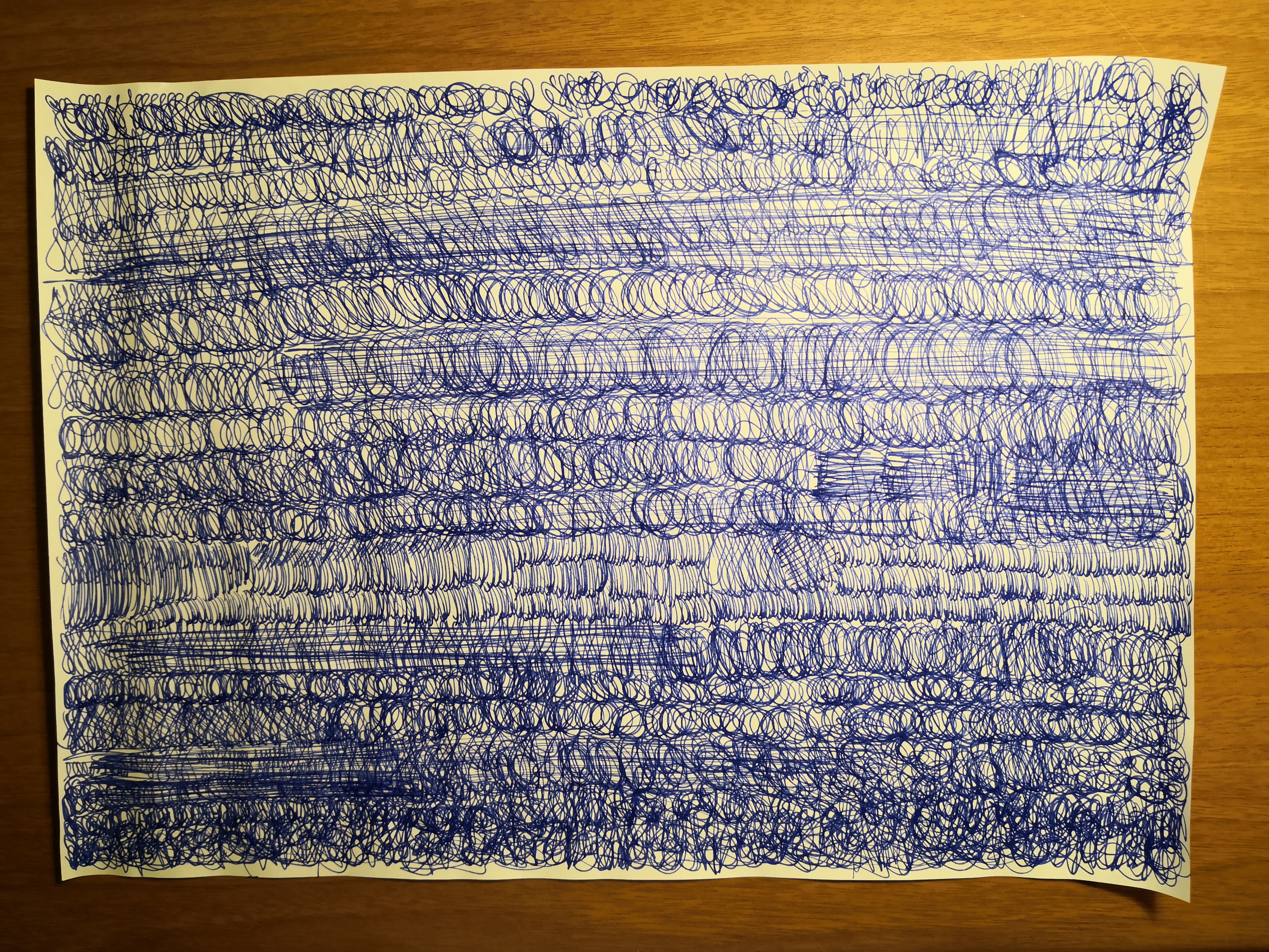 Dopo questo tour de force per la povera Pelikan (foglio A3, fatto con una certa pressione, almeno per me che normalmente sto molto leggero), la situazione sembrerebbe (sgrat sgrat! 8-) ) un po' migliorata. Ho scritto tre pagine subito dopo il "rodaggio" e le false partenze sono state meno. In totale neache una quindicina. Peraltro in terza pagina una sola, contro le 20 di ieri.