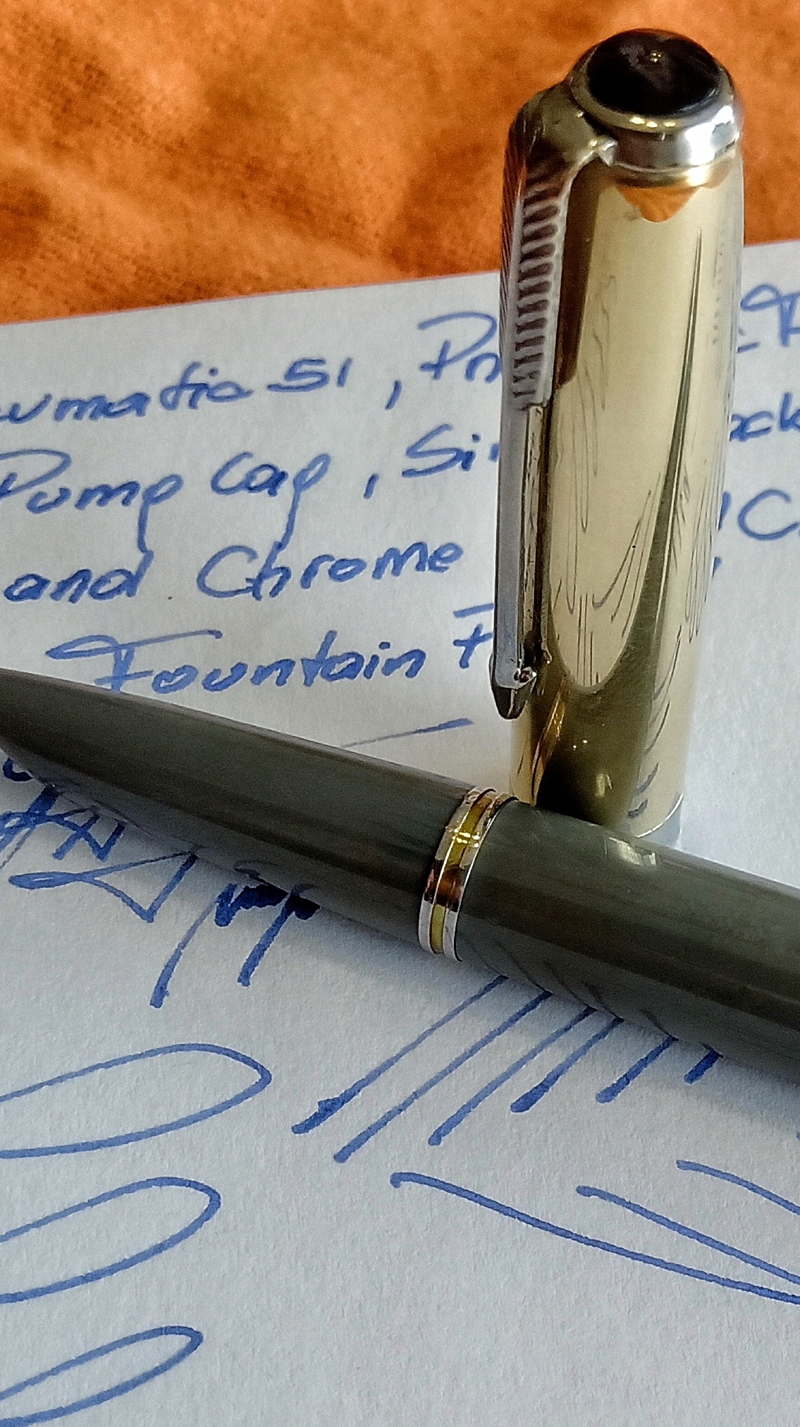 Credo che nel caso di questa Parker 51 Vacumatic, debba essere stato un prototipo della prima Parker 51 (prima che Parker commissionasse la Lucite per Dupont), e ci penso per tre dettagli: il materiale che è celluloide, il cappuccio che non ha il polpo interno in acciaio per non graffiare l'impugnatura, e la clip...