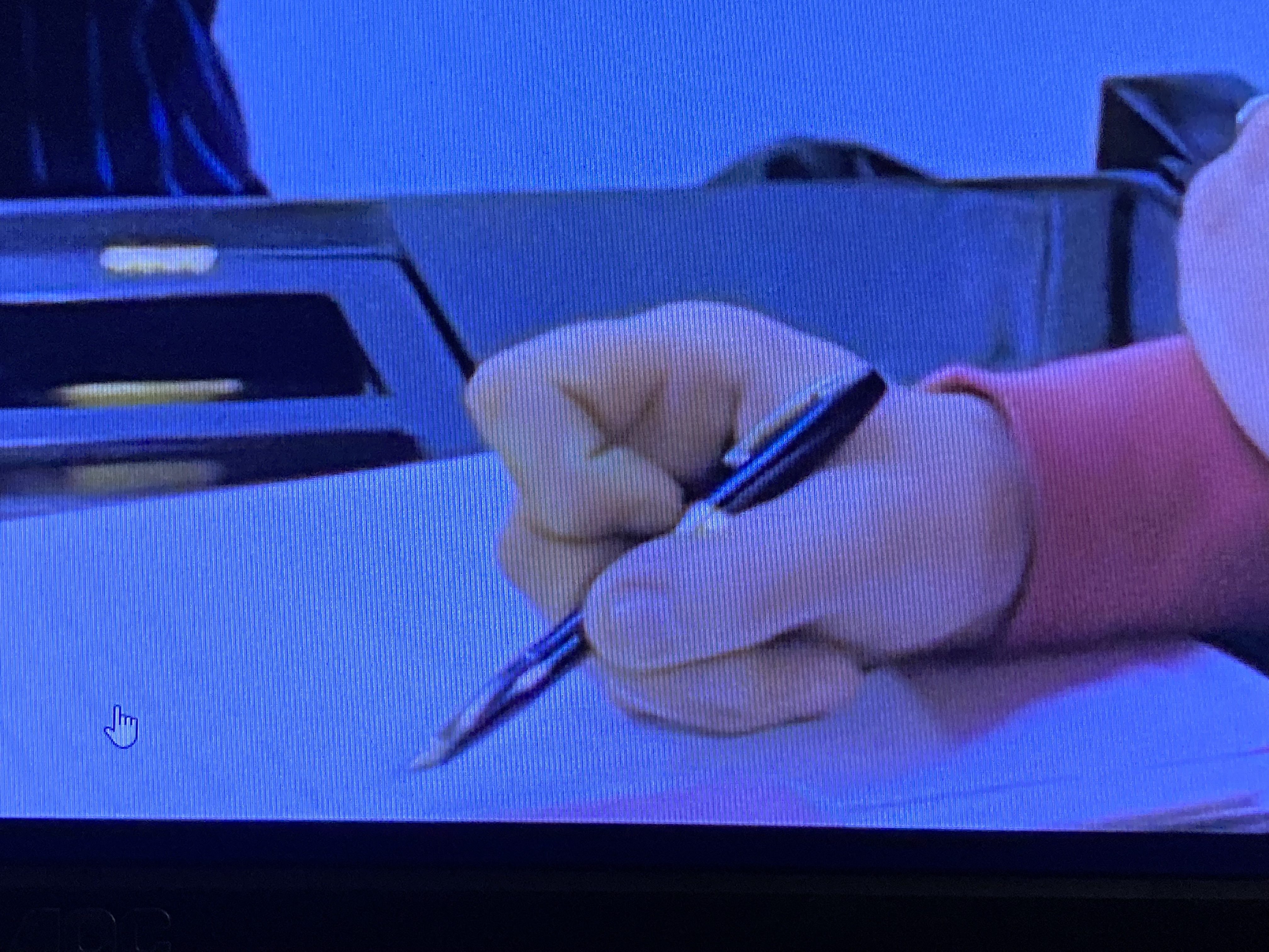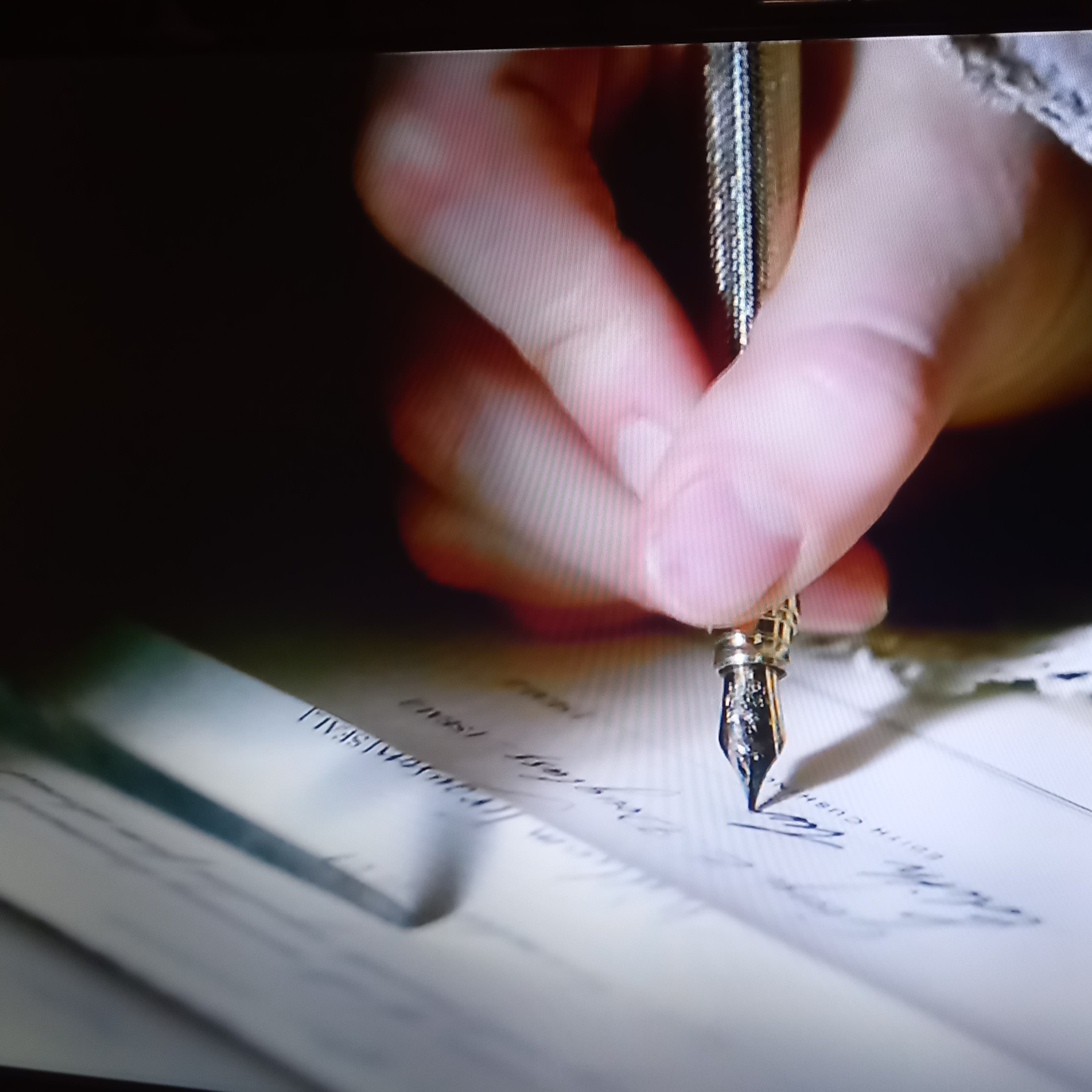 e un dettaglio delle mani che impugnano una stilografica
