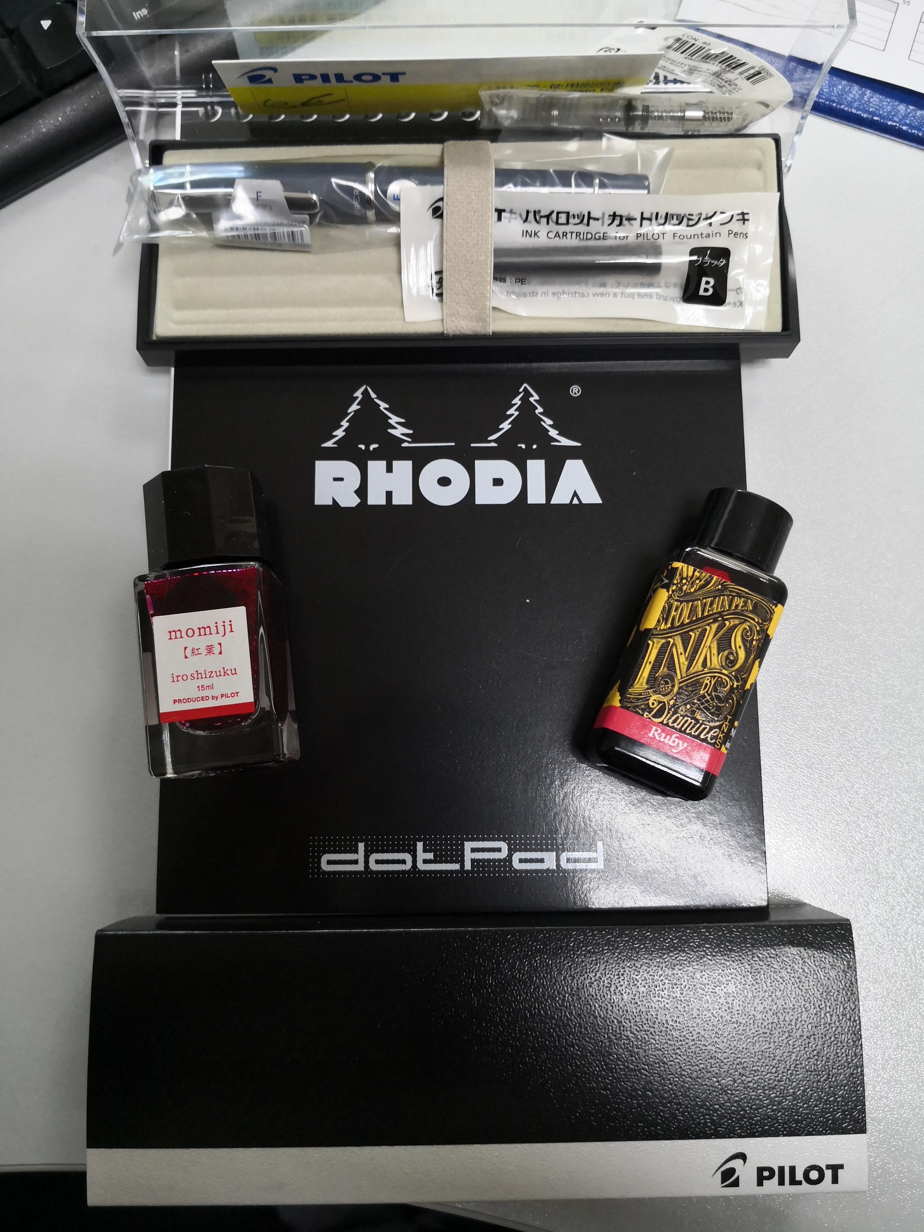 Tonalità alla Stendhal dell'acquisto in Rosso (Diamine Ruby e Pilot Momiji iro shizuku) e Nero (Notepad Rhodia A5 dot e Scatolino Prera).