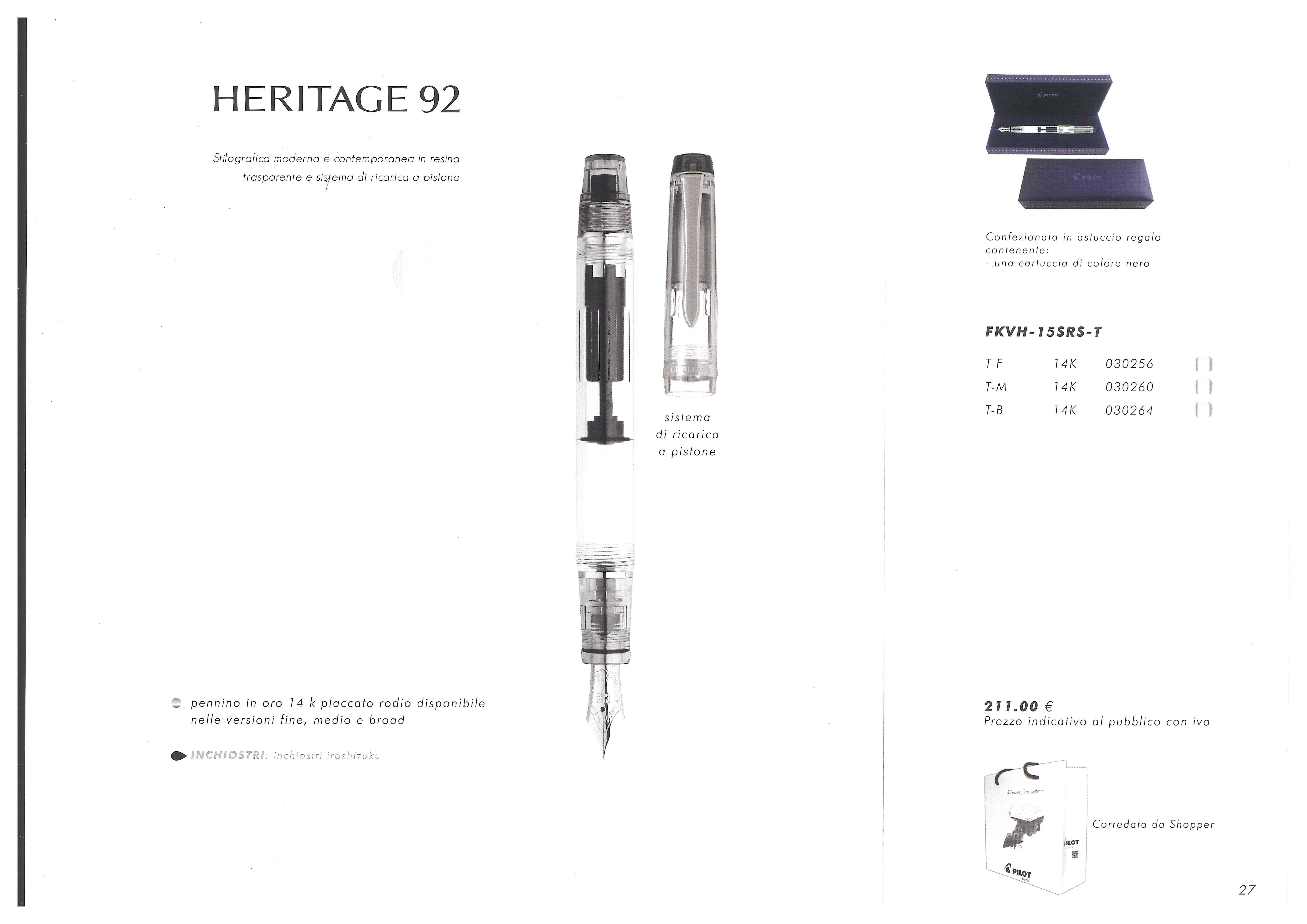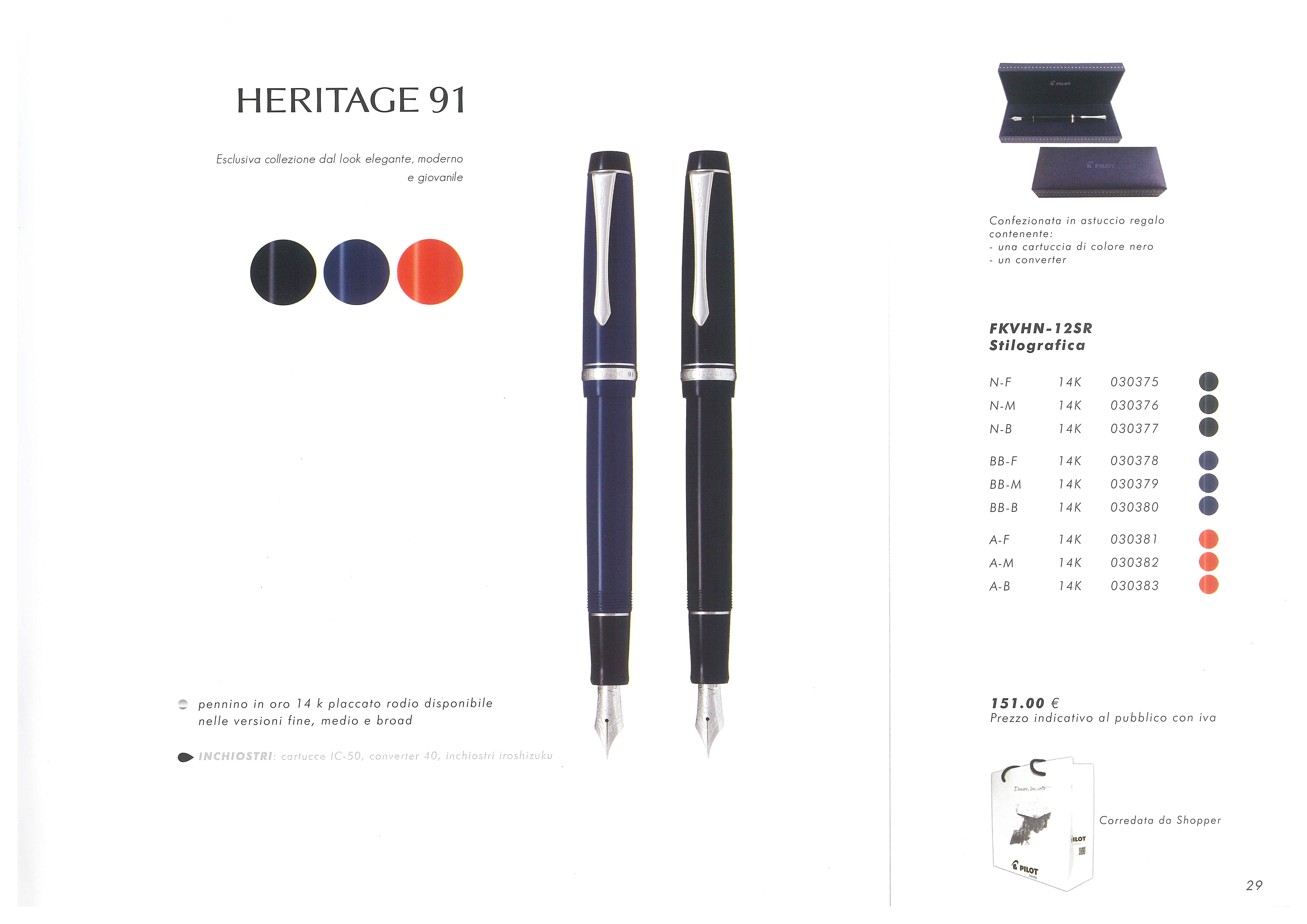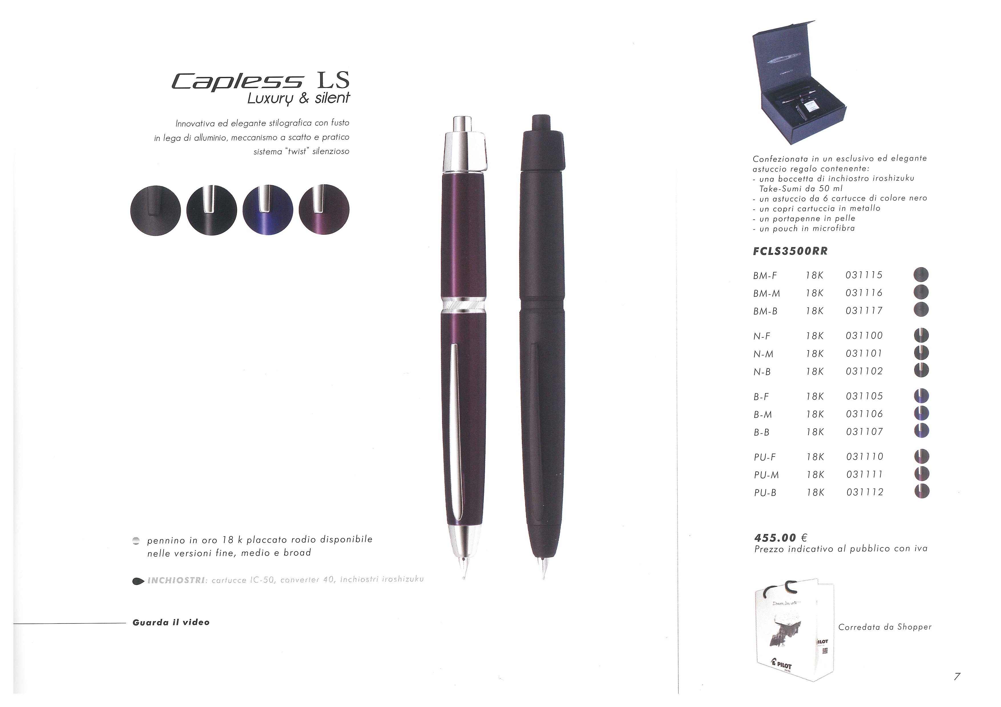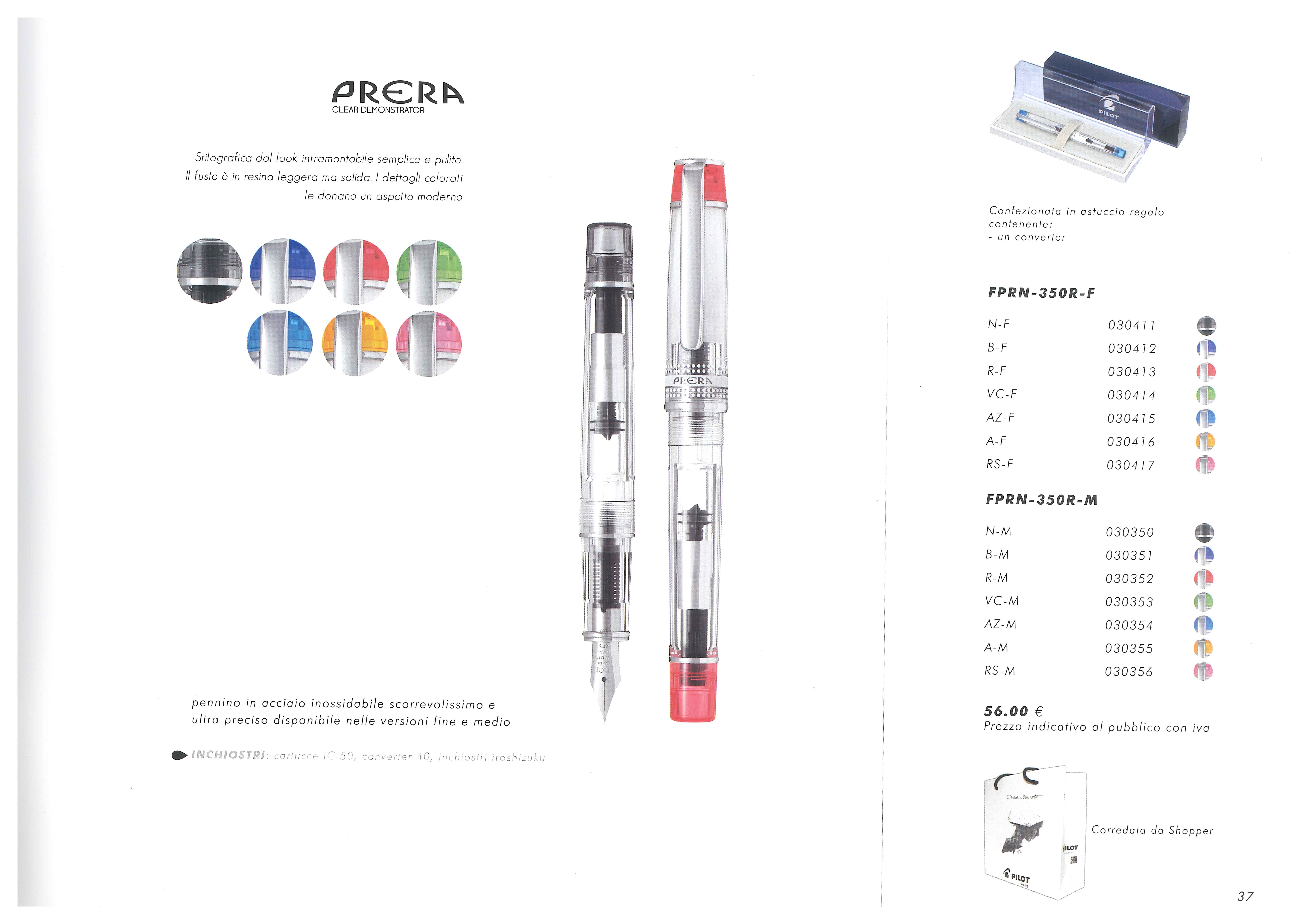 Qui un estratto dal catalogo Pilot 2021/2022 Gamma Alta