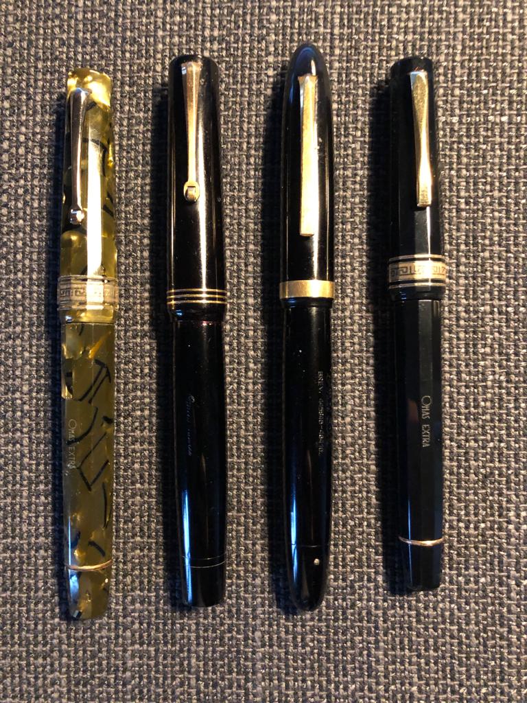 Per in questa foto si vede male, ma nell'altra mi pareva fosse la prima versione delle Omas Extra a stantuffo (mi pare di vedere il fondello con due ghiere), quella tonda, con le stesse forme della Lucens.