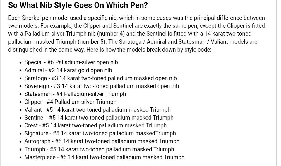 mi sembra però che il modello snorkel con il pennino monocolore sia l'Admiral mentre il Saratoga ha il pennino bicolore