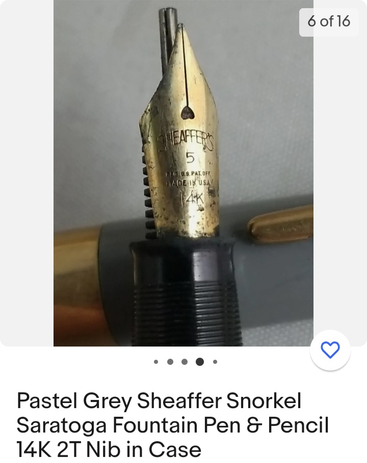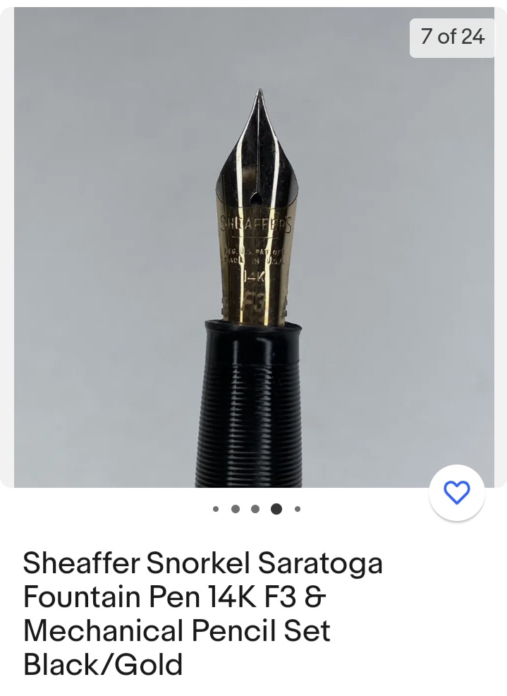 Riguardo al fatto che il modello sia Saratoga o Admiral, il fatto è che la penna stilografica è stata acquistata come Saratoga, e sebbene la bibliografia di Jim Mamoulides ( https://penhero.com/PenGallery/Sheaffer ... bCodes.htm )