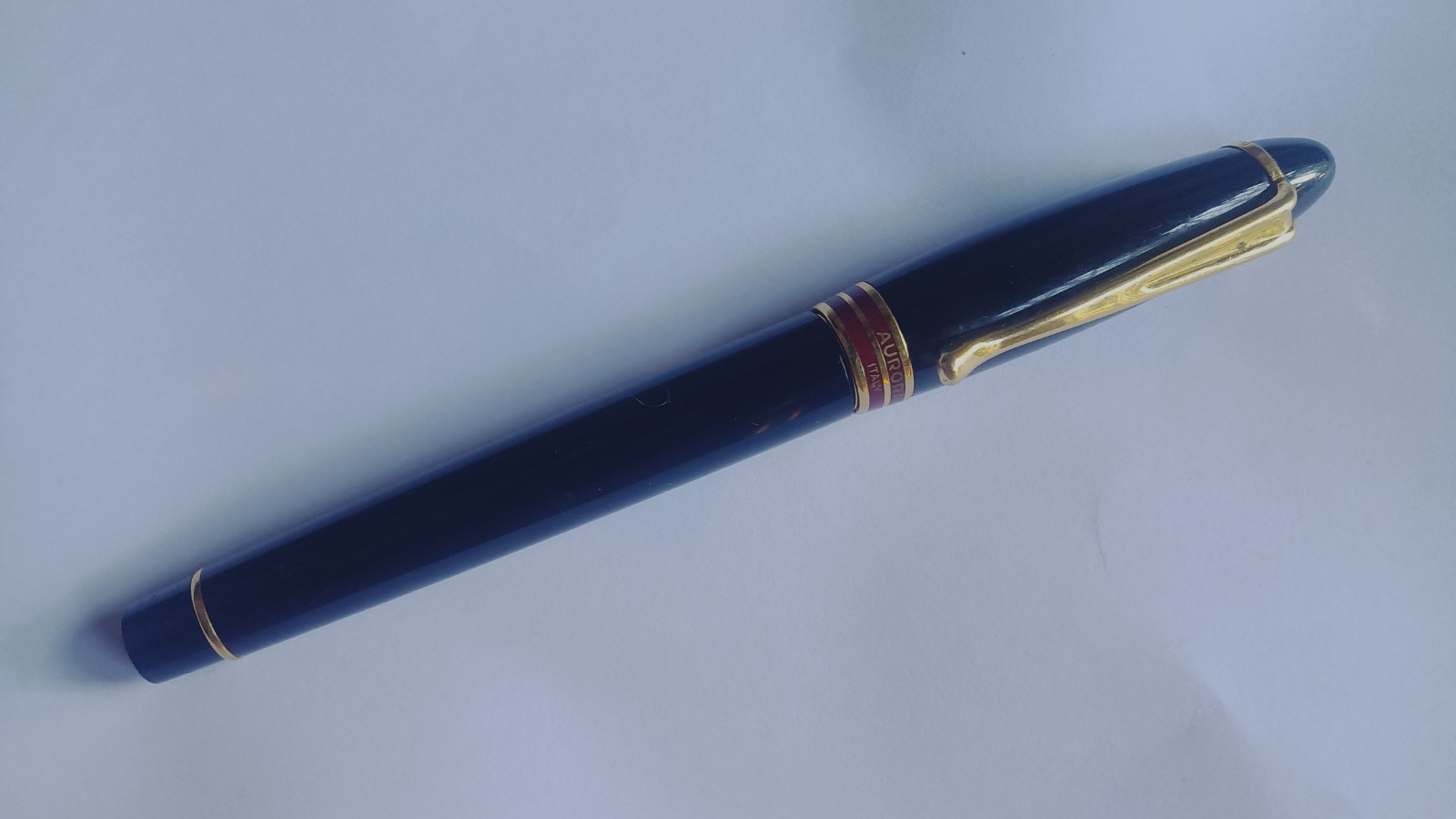 La penna contiene una cartuccia Aurora King blue già inserita, dovrò fare una buona pulizia e capire se l'inchiostro si è seccato nel pennino.