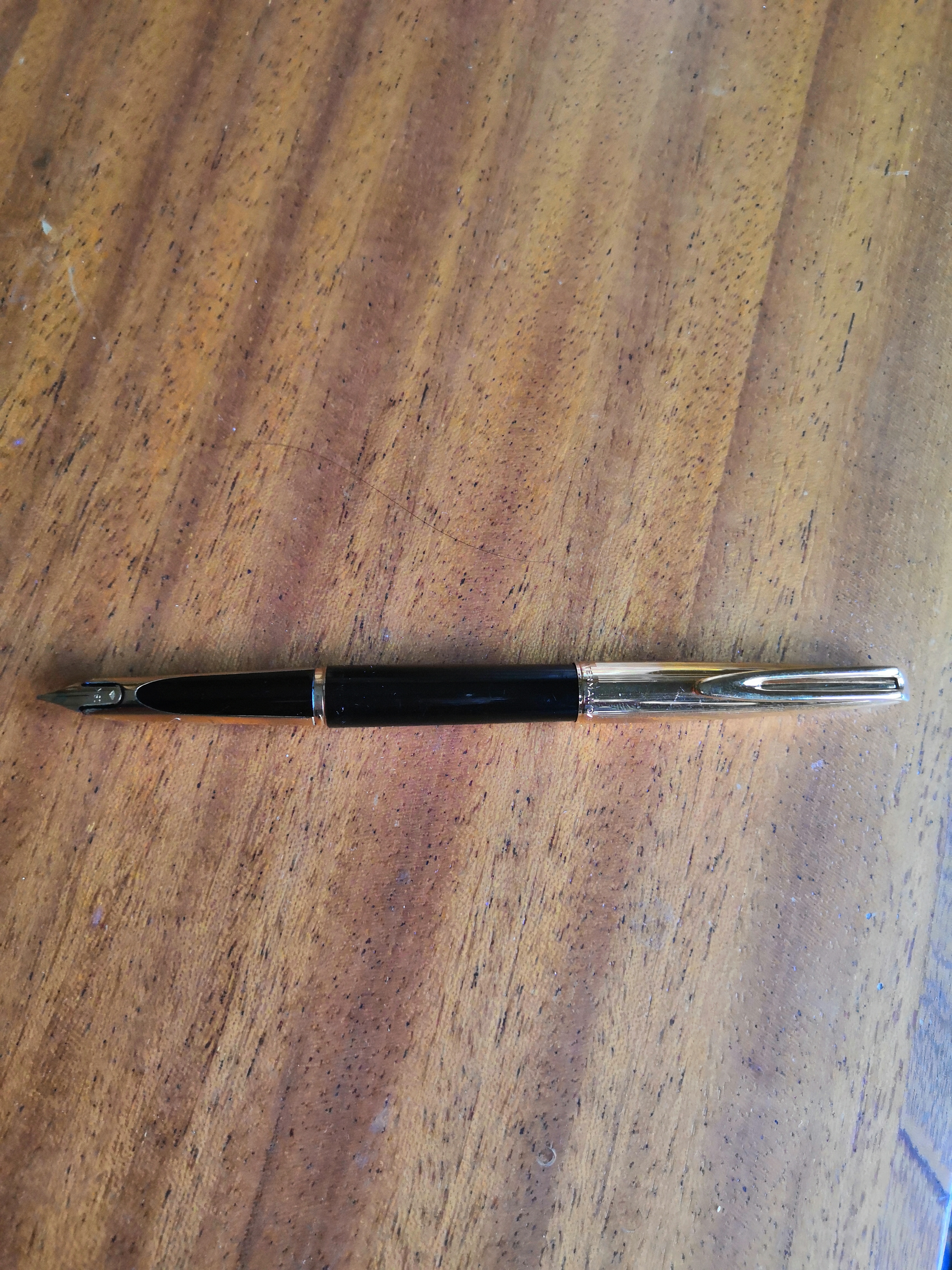 Ultimo acquisto e prima Waterman per me. Mi sembrava in buone condizioni, c'era anche una cartuccia dentro, vuota, usata. Per 10 euro non potevo lasciarla lì. Le ho dato una pulita, ed eccola qui