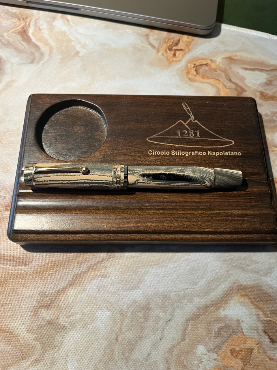 Tornando al portapenne della discussione, anche a me fa un poco paura, sembra instabile, ha però sicuramente il vantaggio di lasciare in esposizione, quasi tutta la penna, ma preferisco quello in ceramica arricchito dal ricordo familiare![]()