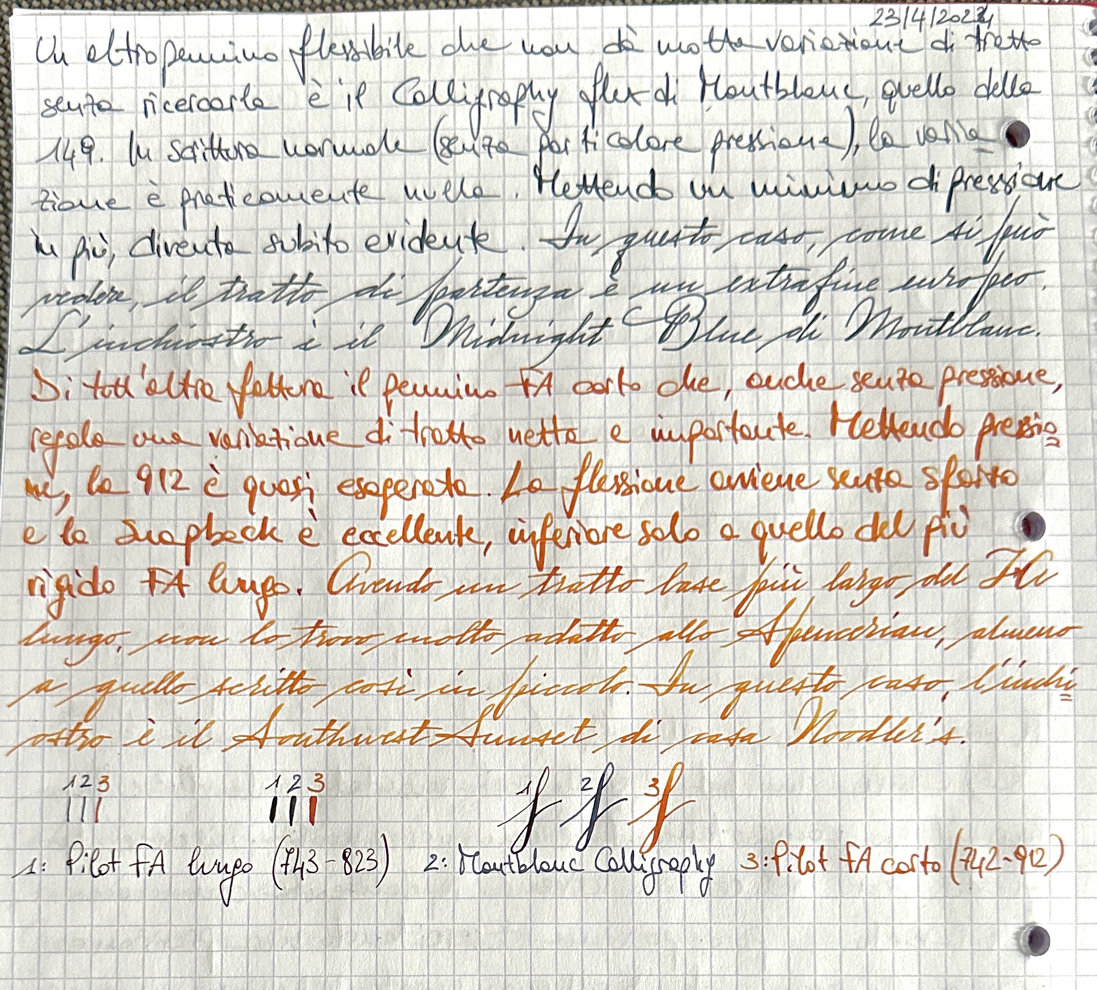 Si, ho rallentato leggermente e metto sempre attenzione alla scrittura (guardo sempre forme ed altezza delle lettere, mentalmente cerco sempre di "toccare" la linea in alto e la linea in basso....anche immaginarie), anche in appunti veloci. Sinceramente non mi sono ispirato a qualche stile calligrafico, volevo un bel corsivo. Dopo anni vissuti da"cacografo", fa piacere ricevere complimenti giornalieri per la scrittura
