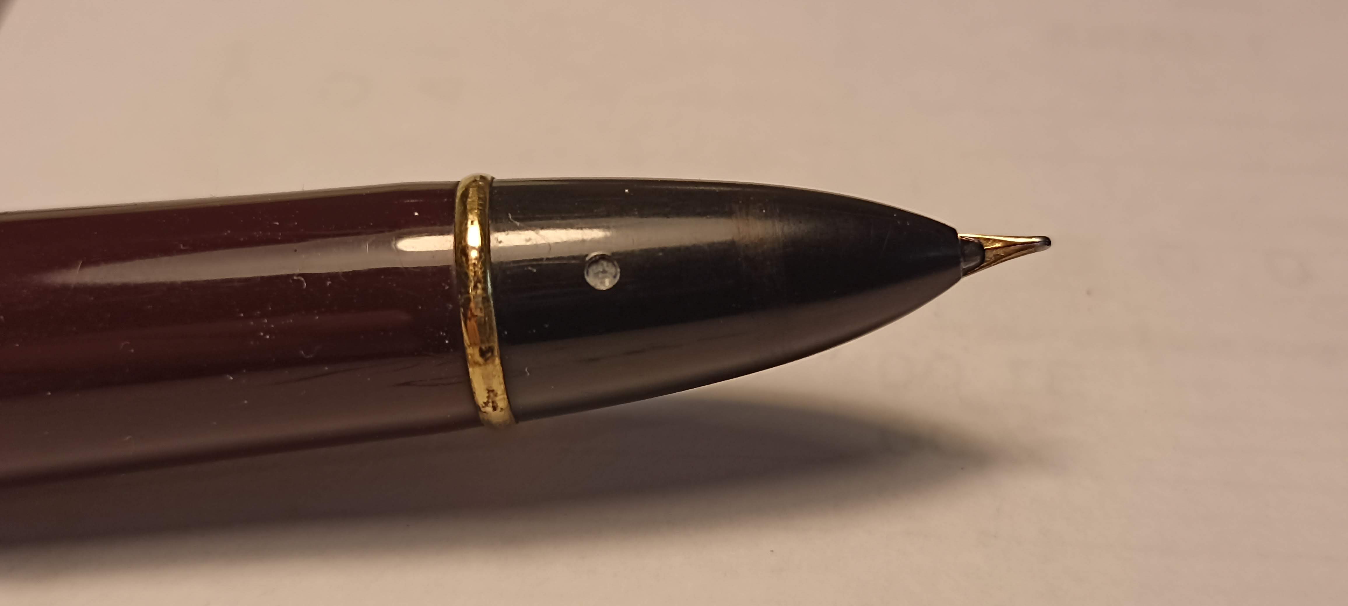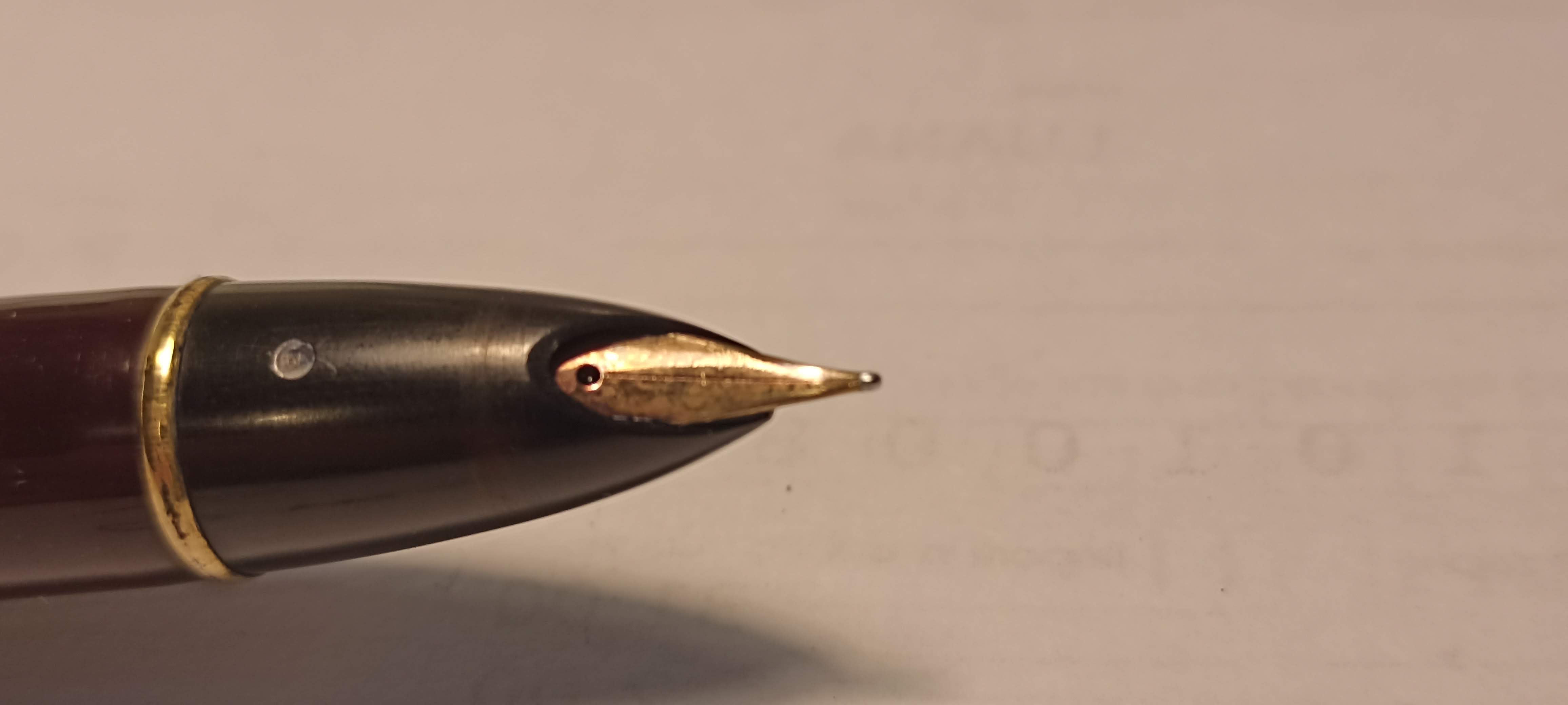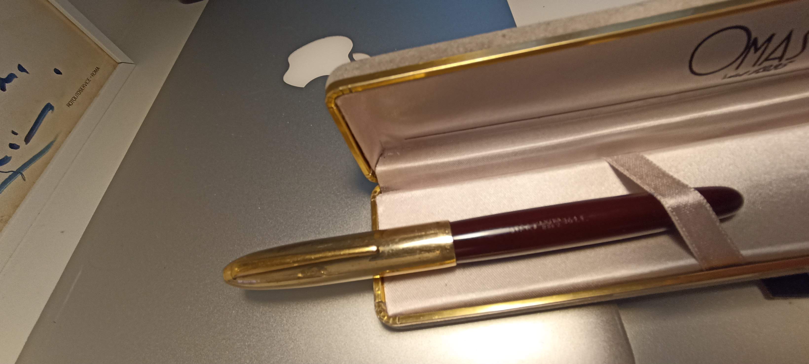 Ho messo nel paniere anche questa 361 t bordeaux, chiusura a scatto e on a vite ..... da quello che ho letto nel forum dovrebbe essere una delle primissime uscite di fabbrica, in celluloide. Molto bello il colore, e scrive in modo impeccabile da entrambi i lati, caricata con Pelikan 4001....