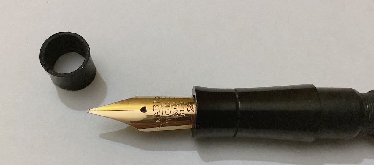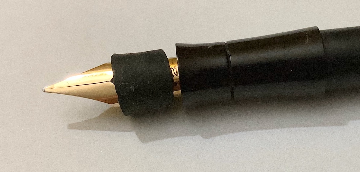 Durante una tribolato intervento , non riuscendo ad inserire fino in fondo alla sezione un pennino con il suo alimentatore a causa della presa difficoltosa (e scivolosa) del pennino stesso, in cerca della prima "cosa" sottomano che potesse venirmi in aiuto , prendo lo scarto di un sacchetto in lattice poco prima tagliato a misura.