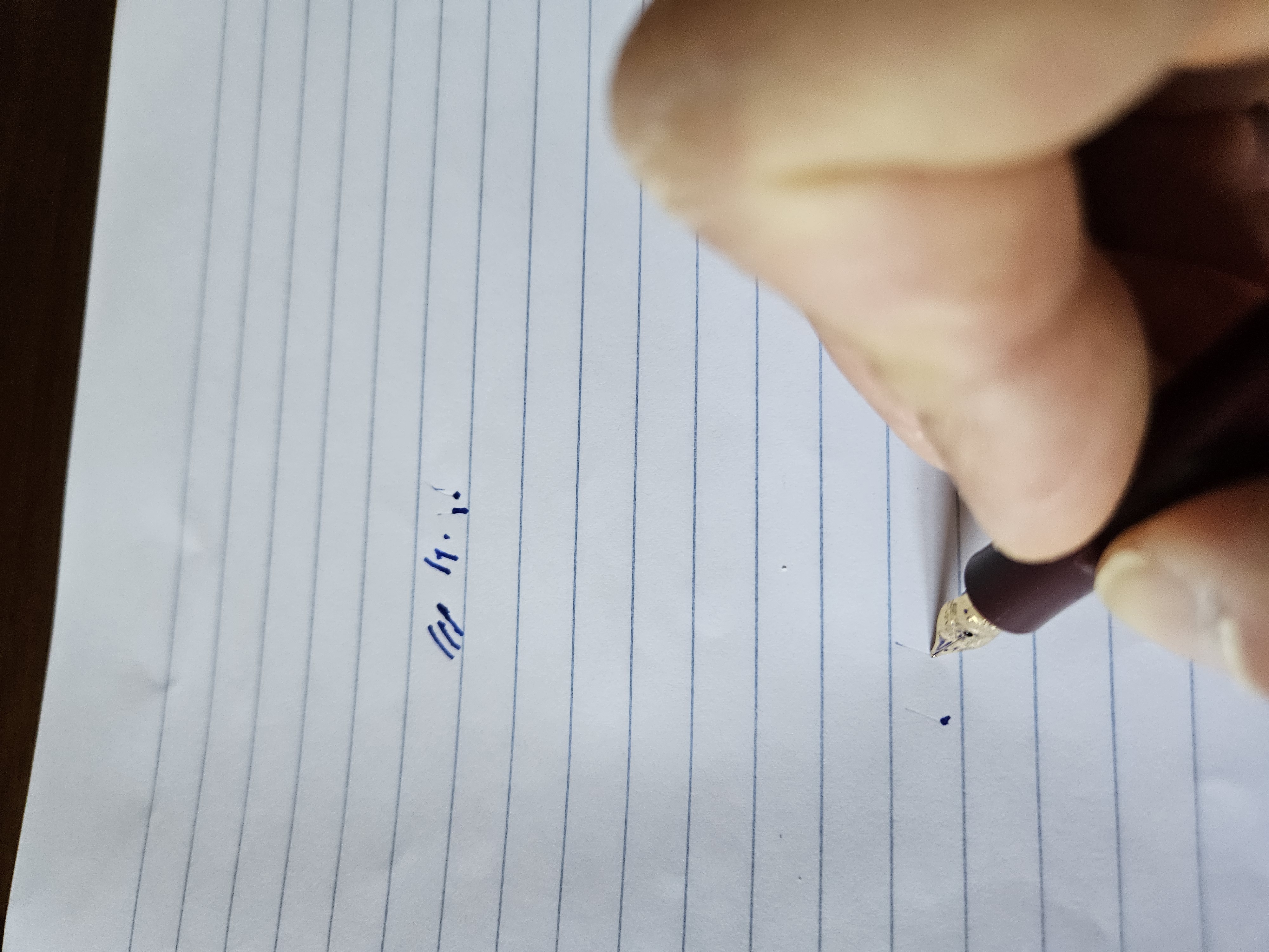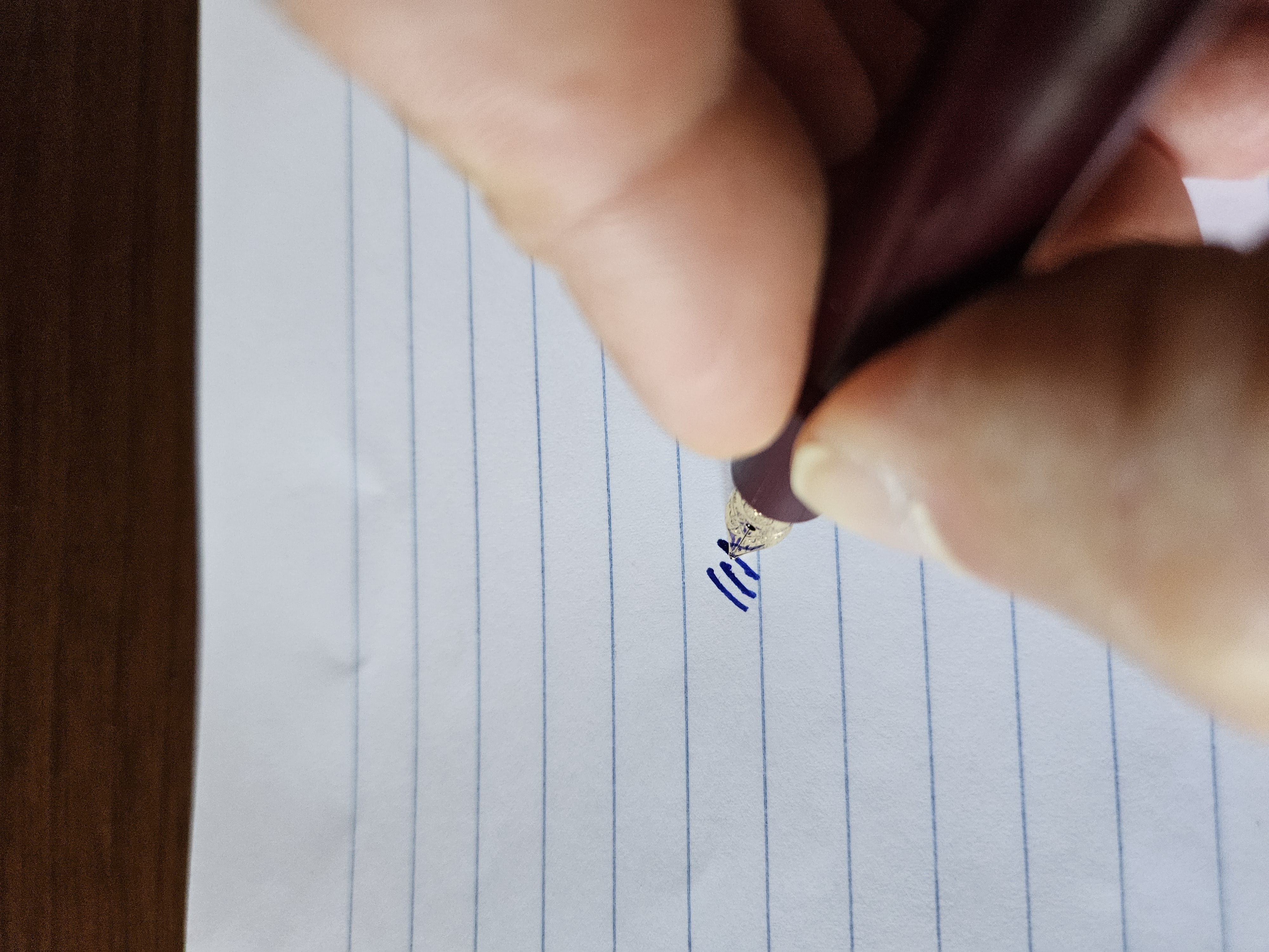 Quindi ricapitolando, Nella prima immagine scrive, nella seconda con il pennino appena appena ruotato rispetto alla prima immagine non scrive, e nella terza immagine con il pennino appoggiato al foglio perpendicolare non scrive neanche per idea.