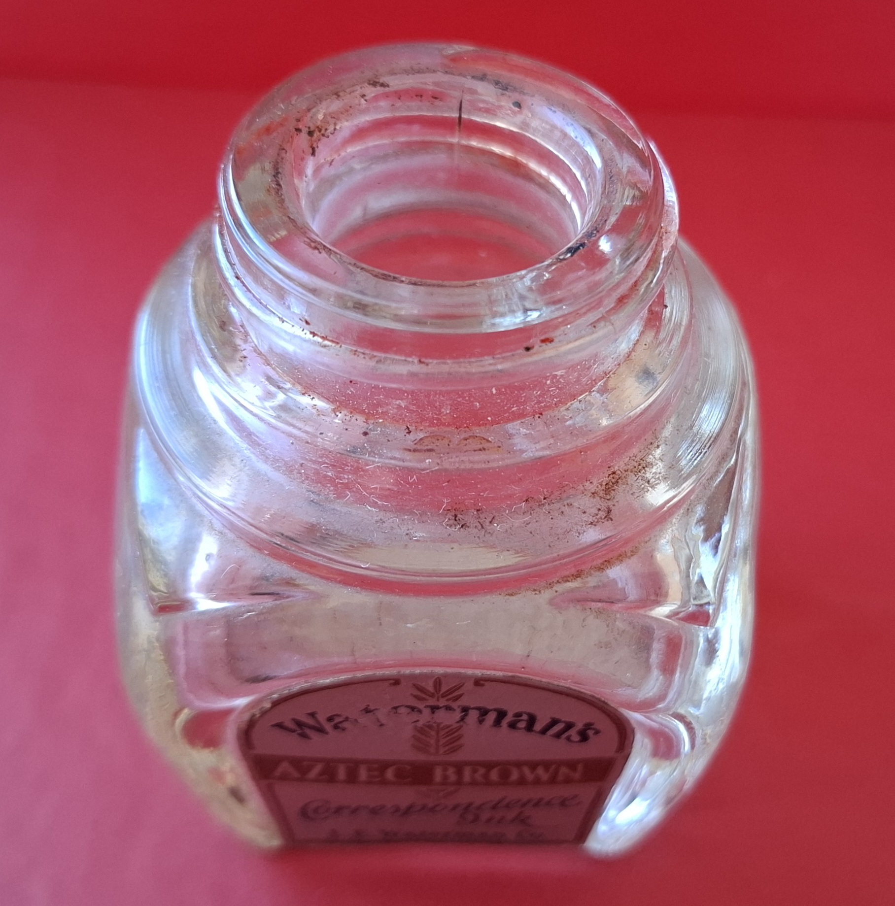 Ed è probabilmente per questo peccato originale - un “difetto di comunicazione” con un prezzo spropositato - che oggi queste boccette non saltano praticamente mai fuori in vendita: addirittura a me è capitato di acquistare proprio la boccetta di “Aztec Brown” ritratta in fotografia sul libro «WATERMAN / PAST AND PRESENT / THE FIRST SIX DECADES» di Max Davis e Gary Lehrer a pag.182…
