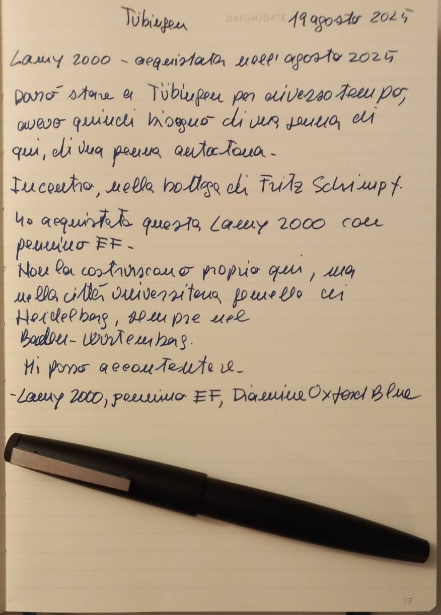 Lamy 2000 con pennino EF – acquistata nell'agosto 2025