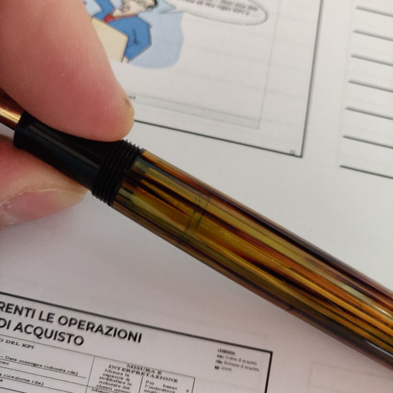 piccardi ha scritto: domenica 31 agosto 2025, 19:42 Se cerchi bene, vedrai che se ne è parlato parecchio (del fornet in particolare) per recuperare il colore dell'ebanite. Il riassunto te lo ha fatto ottorino; per l'ebanite quella che funziona è la soda caustica, ma la tua penna (che mi pare una M400) non credo ne abbia.