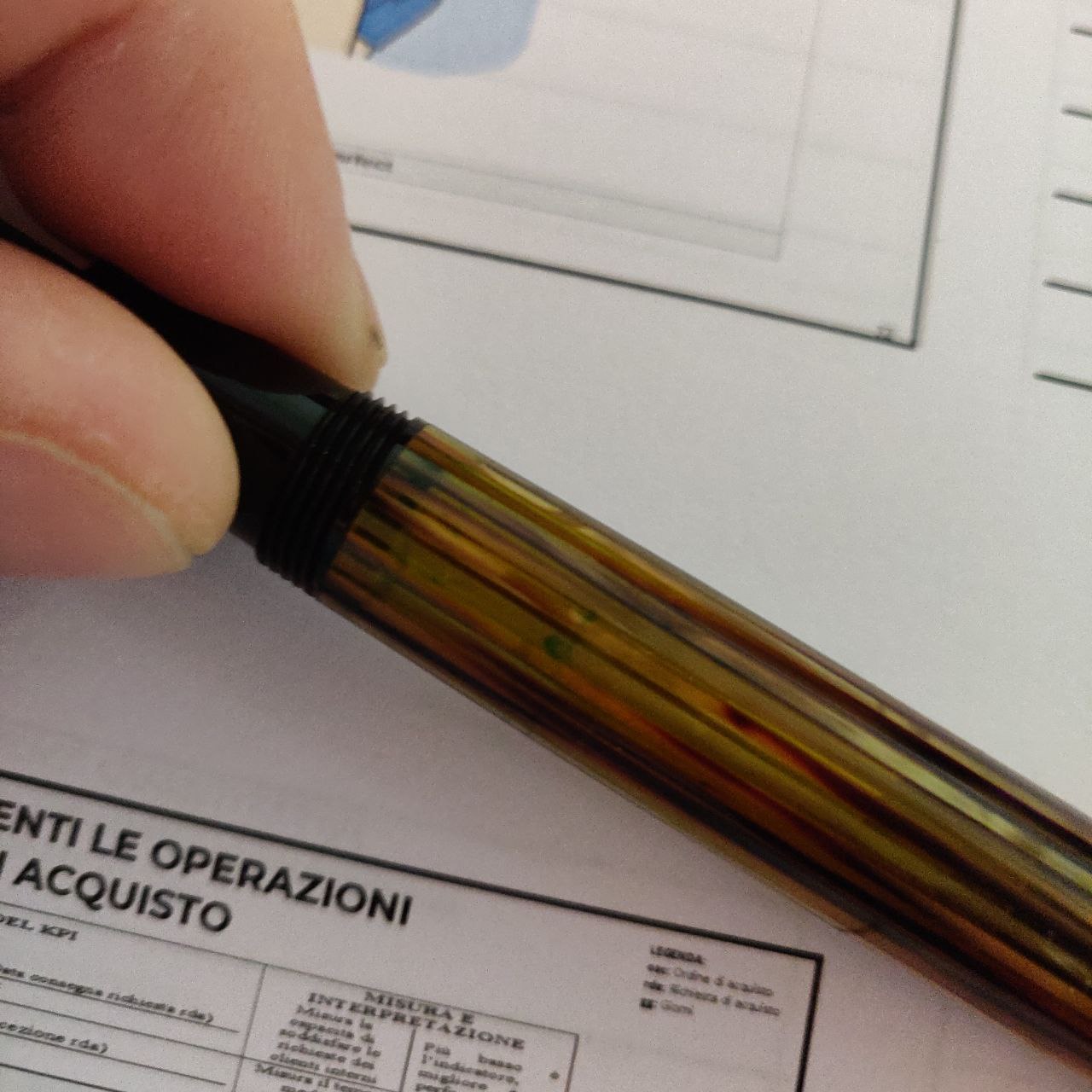 Vorrei chiedervi quindi consigli su entrambi gli argomenti, cioè cosa ne pensate dell'utilizzo dello spray per la pulizia del forno sulle stilografiche e quali consigli potreste darmi per togliere quegli aloni turchesi dalla penna.