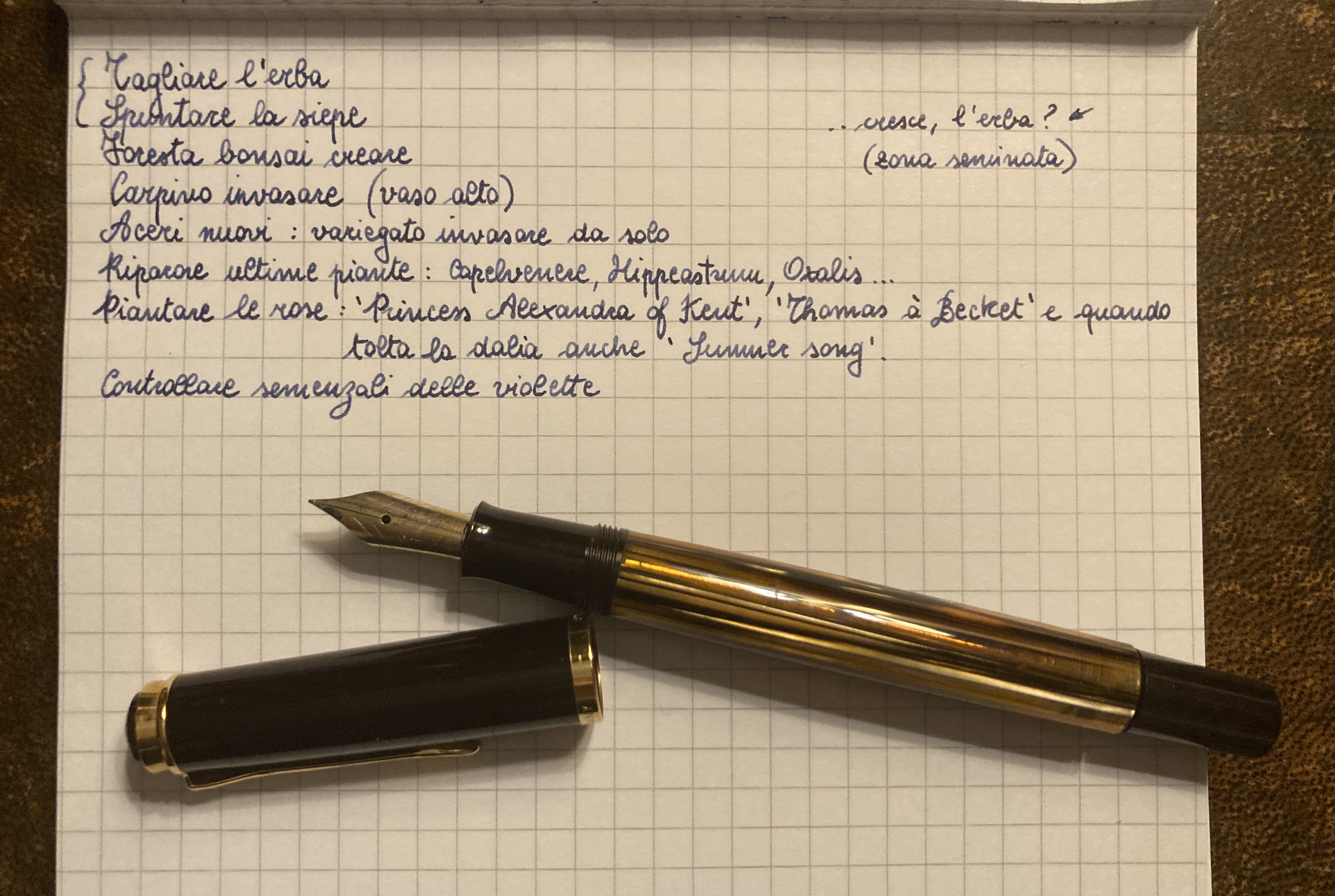 Se con la penna si scrivono bene gli appunti del giardino, allora la penna è giusta :) Inchiostro 4001 blue black per M400 tortoiseshell. Grazie Stefano :thumbup: