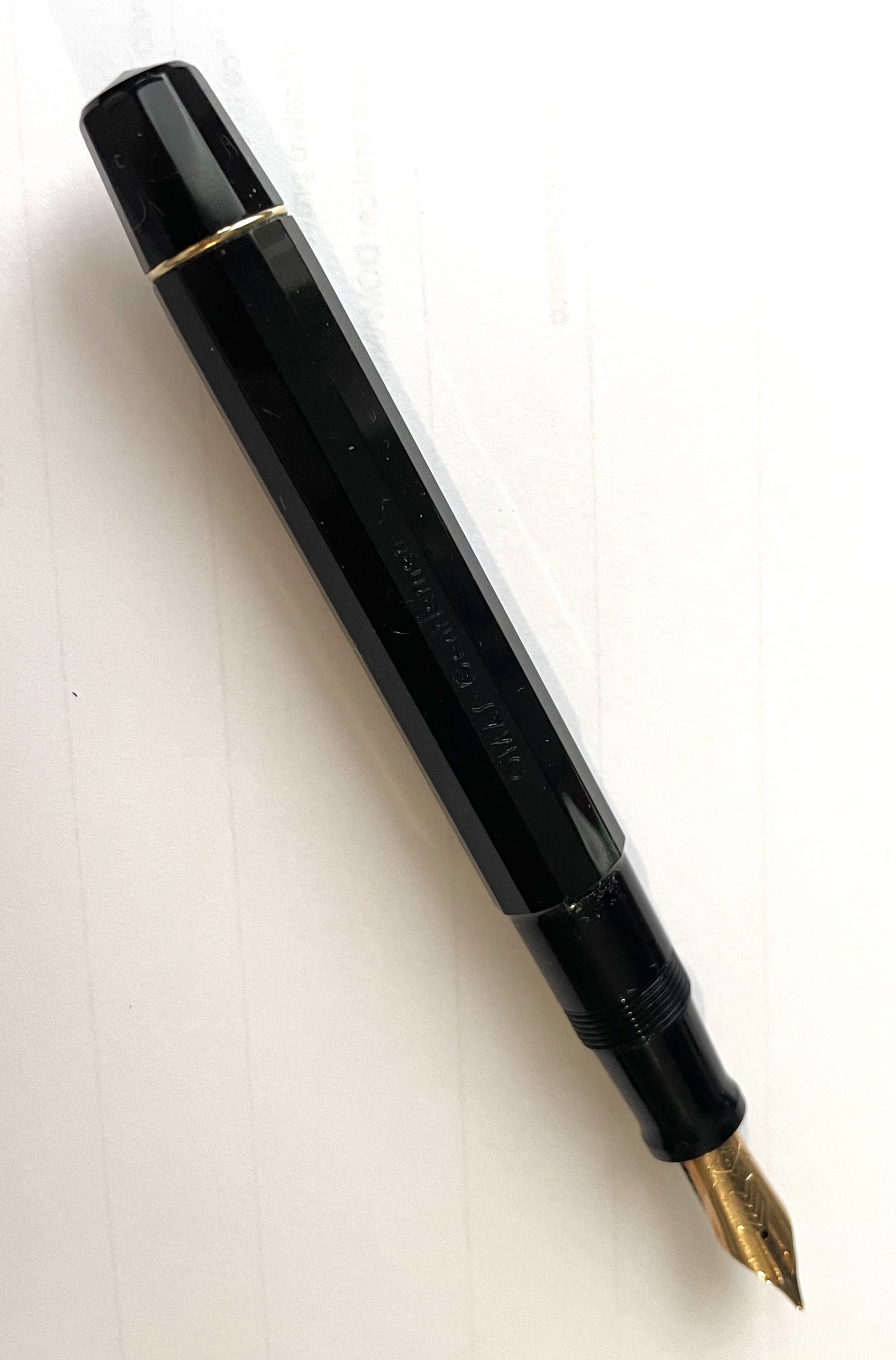 - sebbene sia più lunga della mia extra grande a levetta e anche il pennino sia visibilmente più voluminoso, la sezione è notevolmente più smilza...