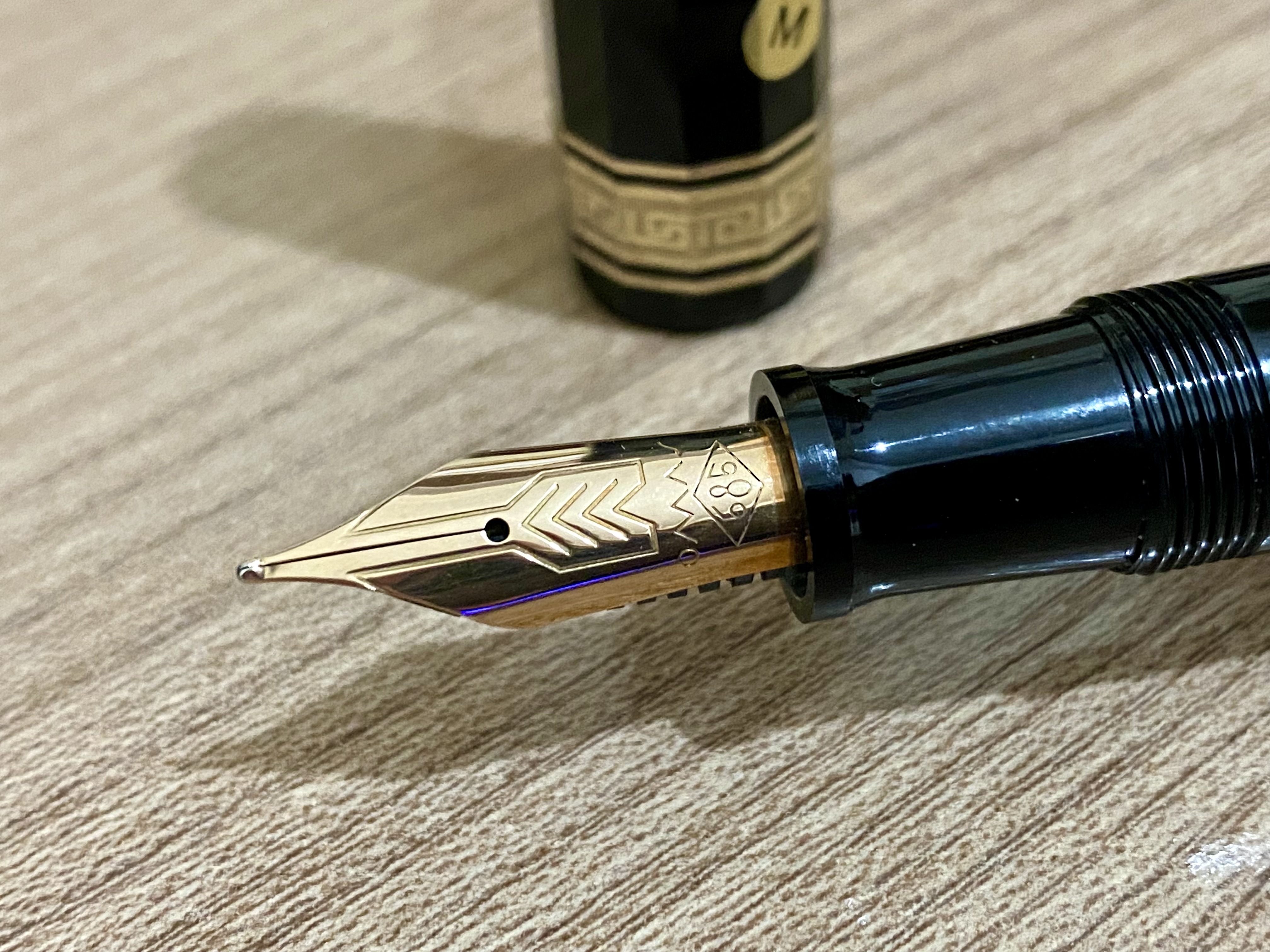 - il foro di areazione del pennino, che è a freccia, non è a casetta ma tondo e il pennino sembra ben poco flessibile, inoltre non riporta la marcatura "extra lucens" sotto il titolo <750>